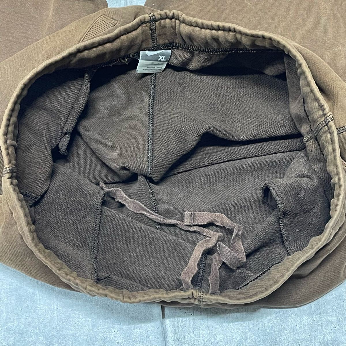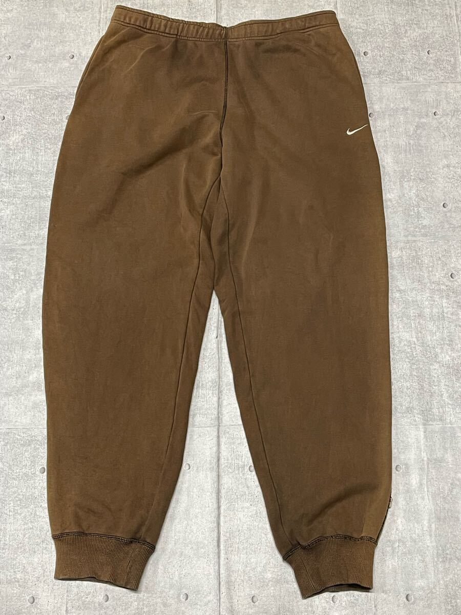 NIKE 大きいサイズXL ゆるダボワイド テーパード スウェットパンツ ナイキ  ビッグシルエット リブパンツ 3ポケット 裾上タブ YL1725 ストリート スポーツ ダンス スケート B系 ブラウン 刺繍ロゴ ワンポイント 色褪せ フェード