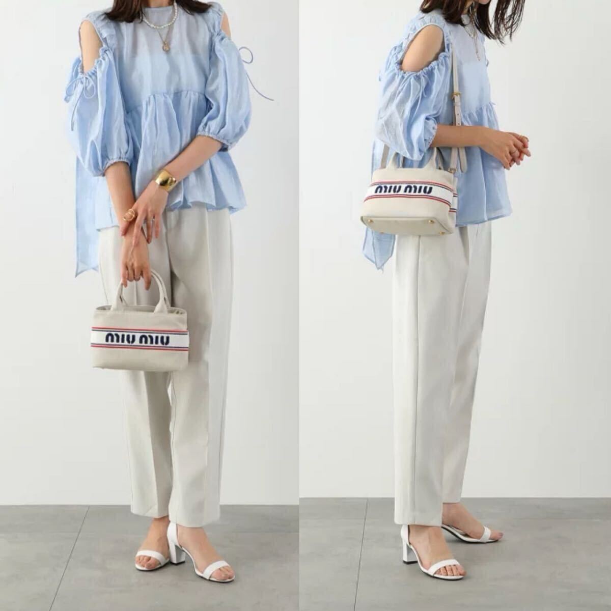 MIUMIU ミュウミュウ ショルダーバッグ ハンドバッグ 5BA253 ロゴ ロゴ 2WAY アイボリー ベージュ