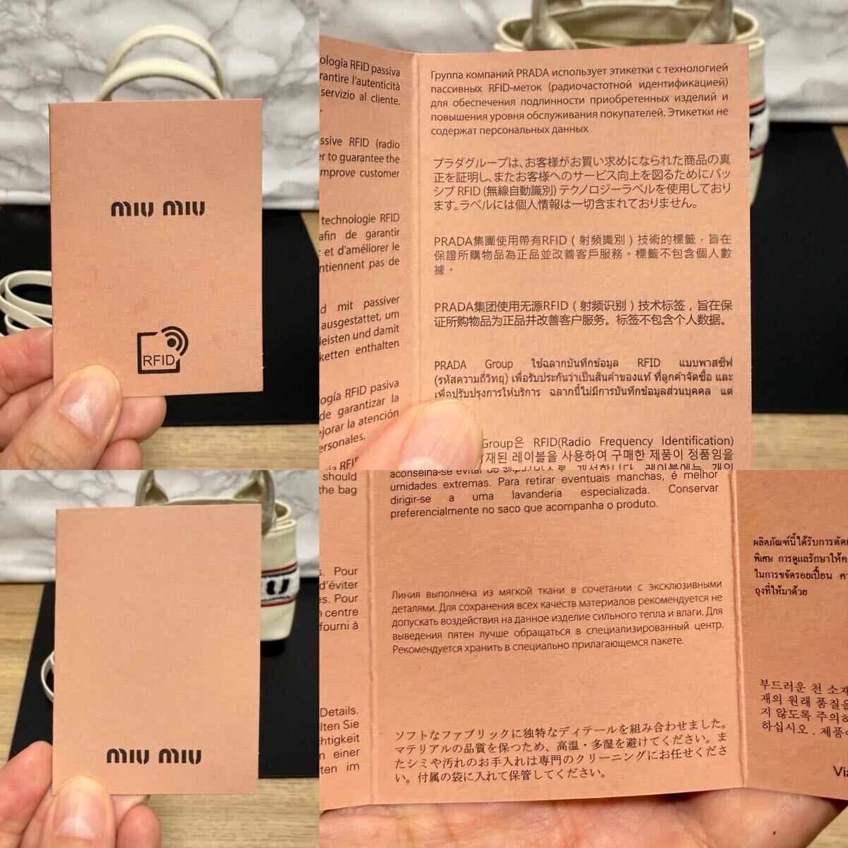 ミュウミュウの両サイドのロゴがお洒落な2wayバック未使用品です。写真のとおり、安心の正規品認定書付きです。
