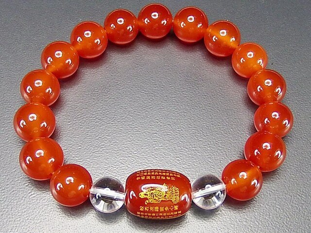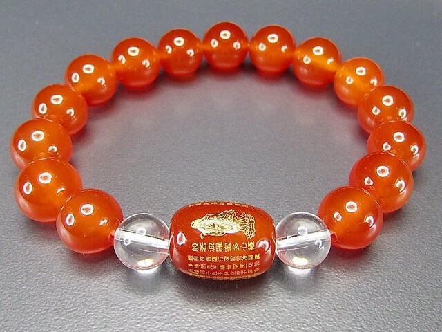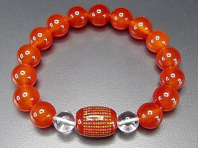 般若心経カーネリアンタンプル水晶12mm天然石ブレスレット石街プライム