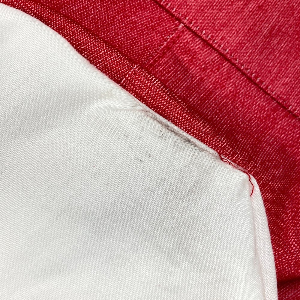 B ポケット裏地毛羽立ち、バックポケット内側ペン汚れが見受けられます |