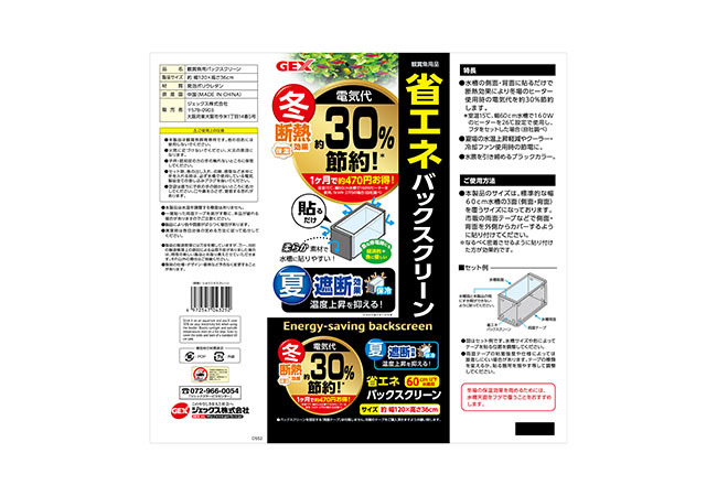 GEX 省エネバックスクリーン 観賞魚用品 水槽用品 ヒータ類冬の断熱効果で電気代30%節約