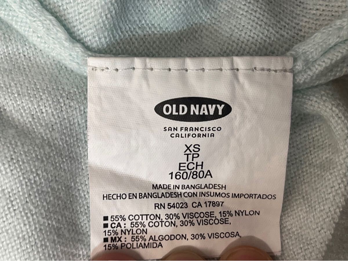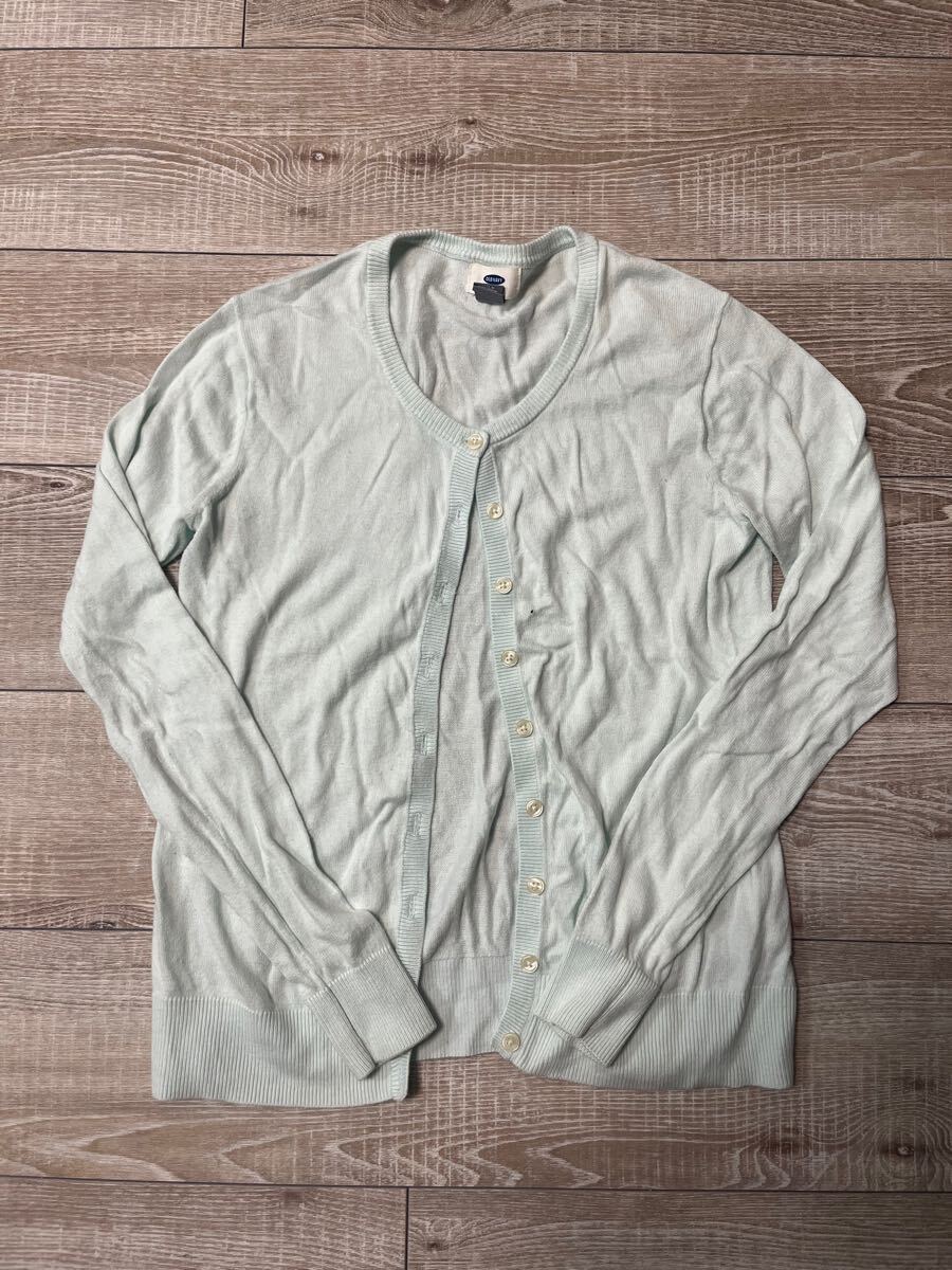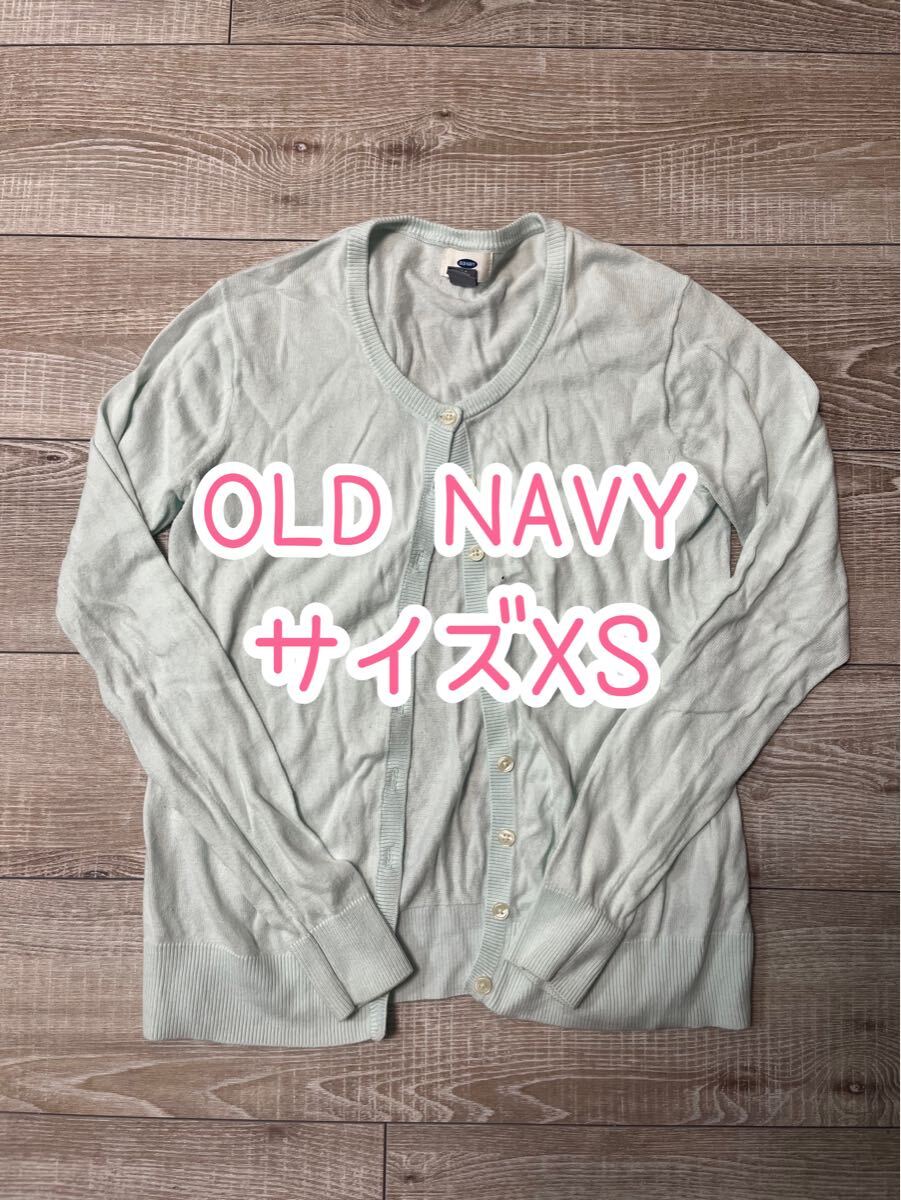 ミントグリーンのOLD NAVY製長袖カーディガン、サイズXS。