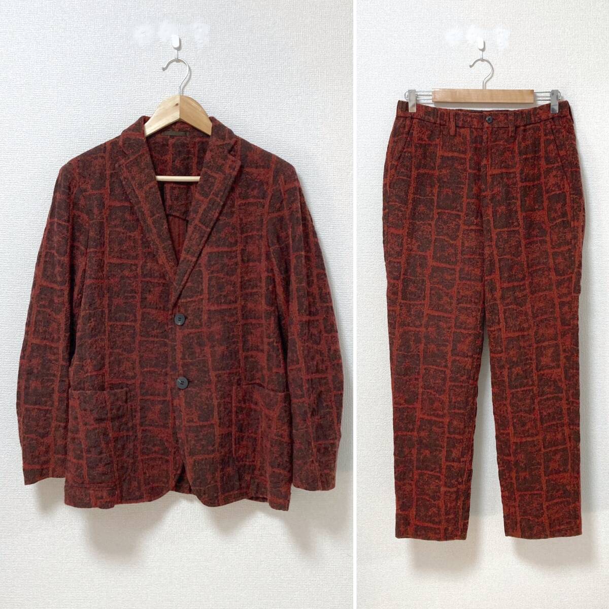 ISSEY MIYAKE MEN ウール 総柄 セットアップ テーラードジャケット スラックス 赤系