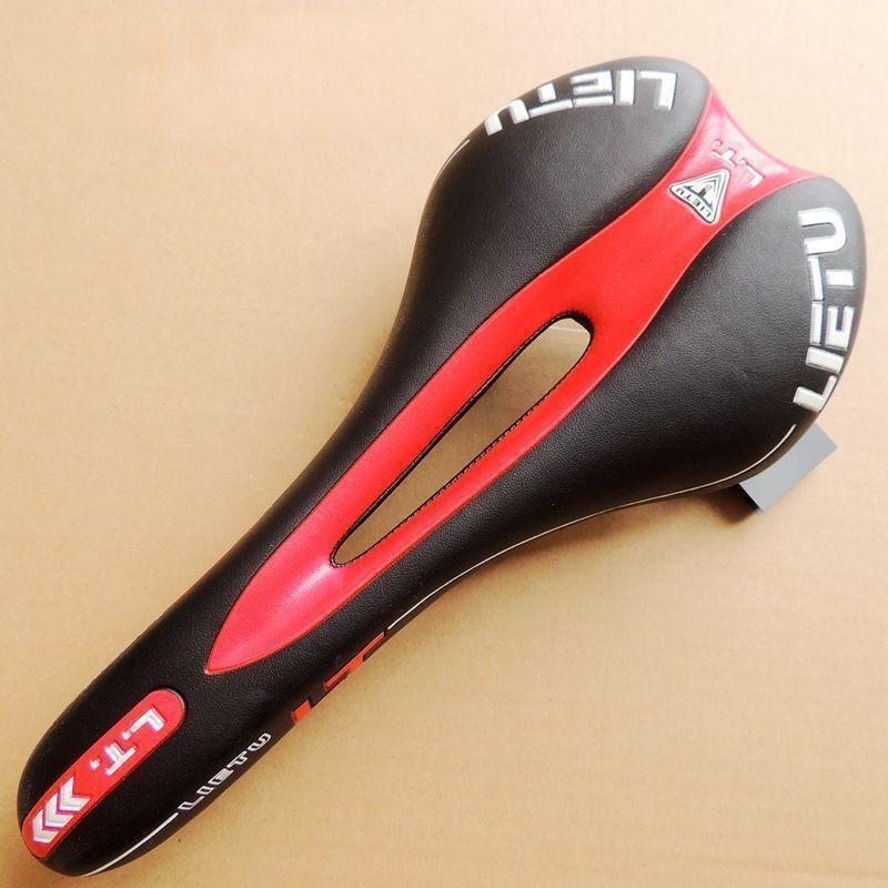 サドル 自転車 スポーツバイク仕様 薄型 ロードバイク クロス ブラック赤ライン (0931)