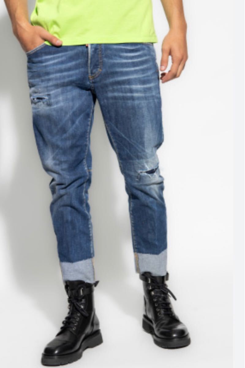 緩めのテーパードシルエットの8部丈デニムになります。