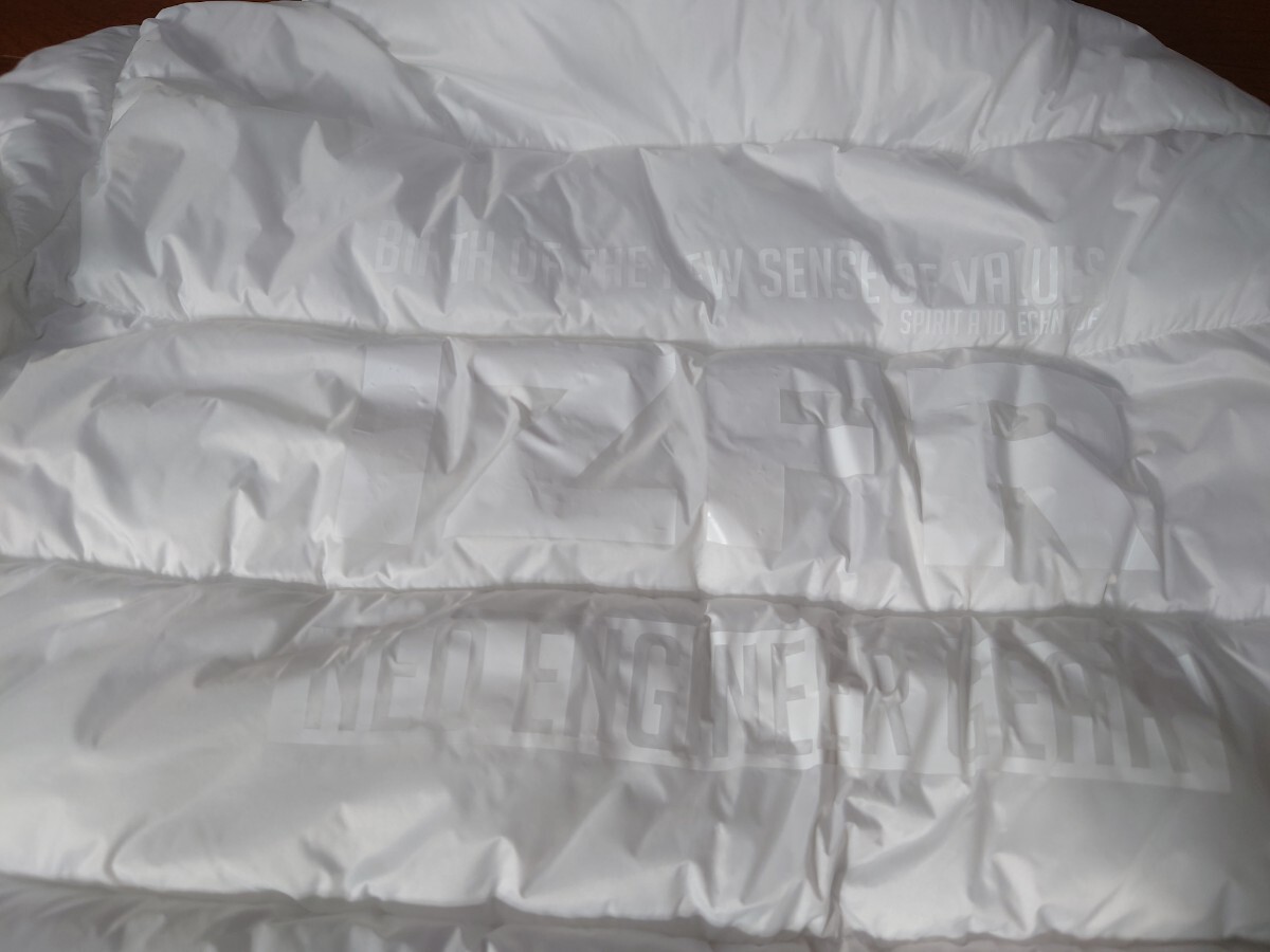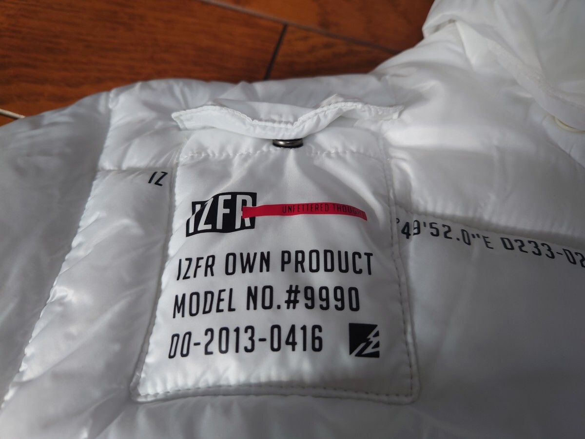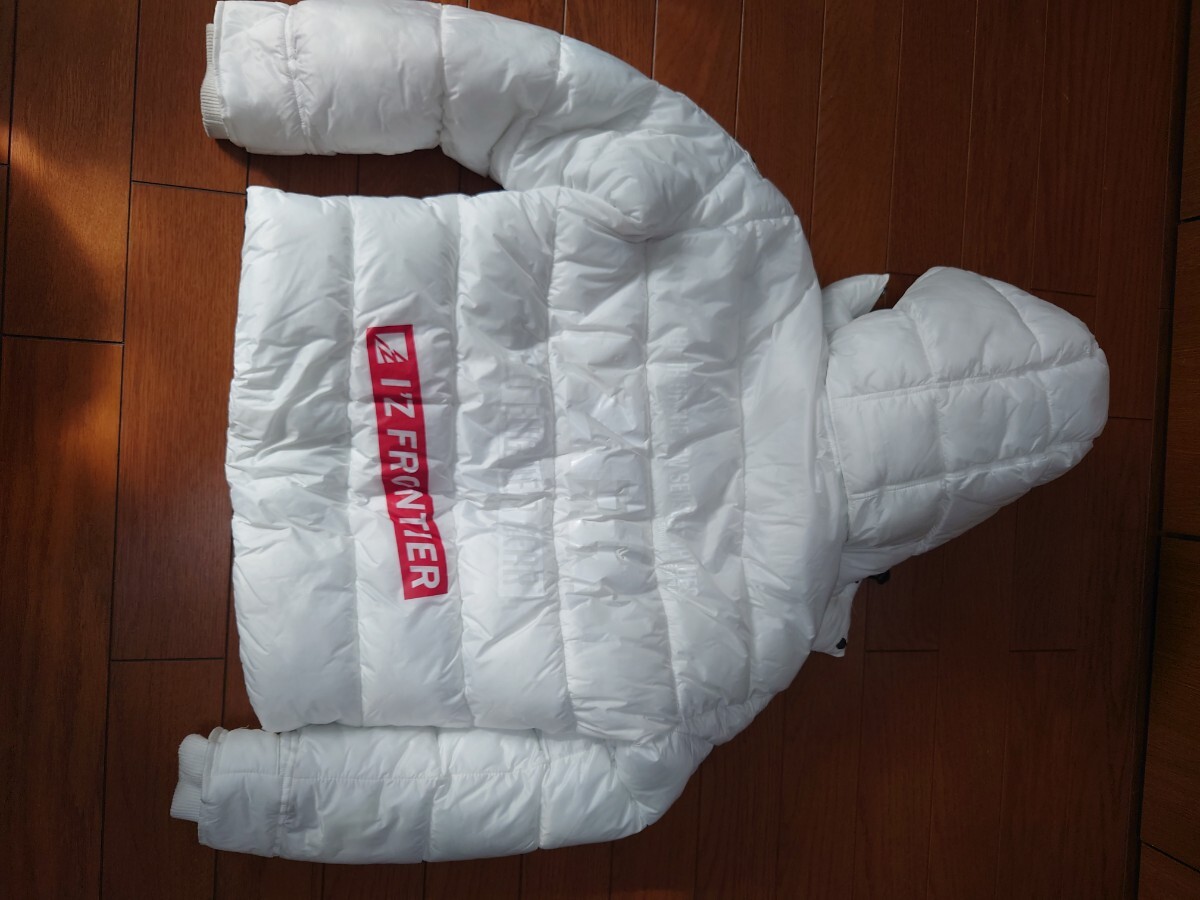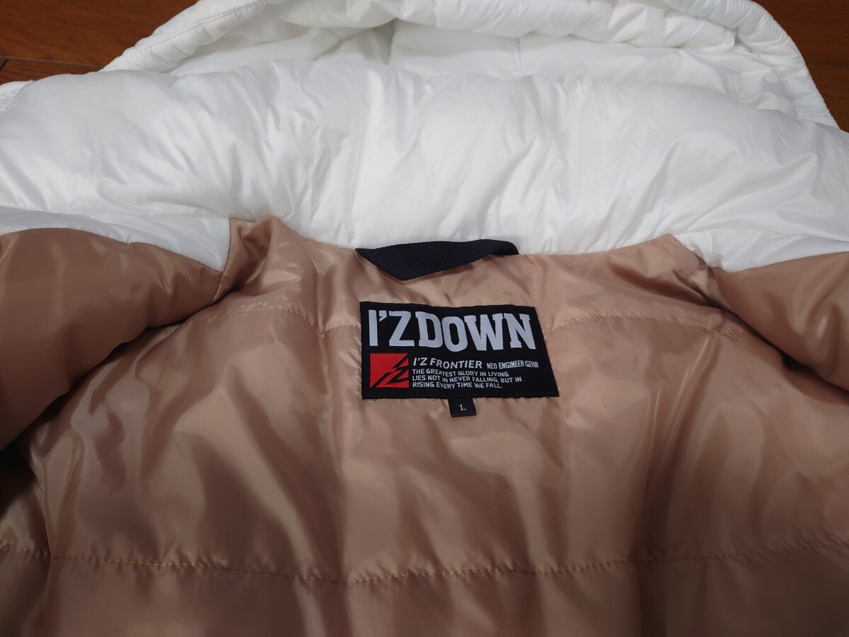 アイズフロンティアのジャケット 本体 ナイロン100% 中綿 ポリエステル100% サイズL 着丈62cm 袖丈60cm 身幅55cm 中古品で袖に汚れあります