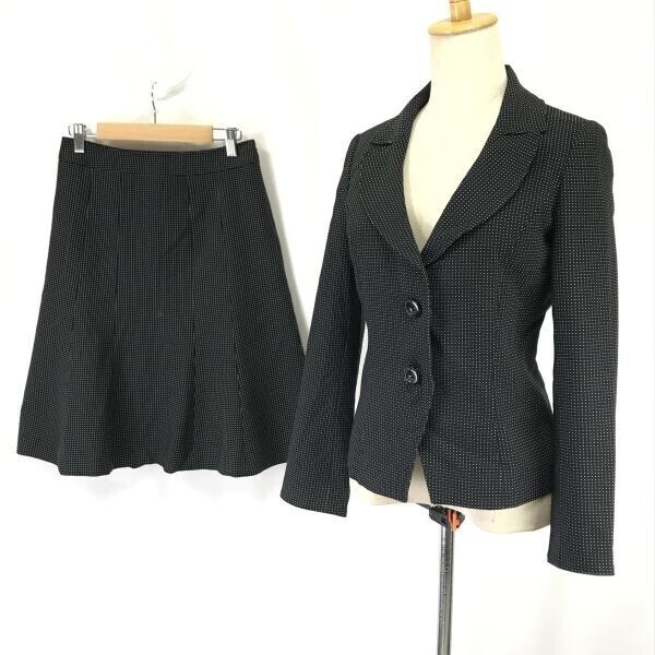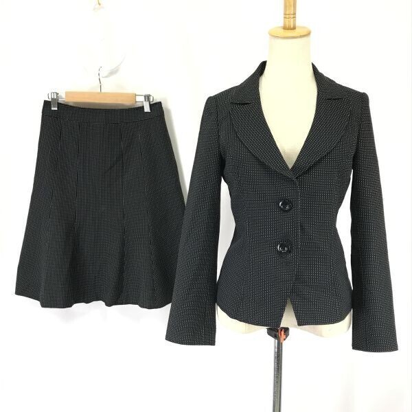 ◆商品説明◆ | ◆size: 2 / M程度 ジャケット ◆着丈(背面の襟ぐりから裾まで)- 約 51cm ◆身幅(右脇下部分から左脇下まで)-約 44cm ◆肩幅(背面の右肩付け根から左肩付け根まで)-約 37cm ◆袖丈(肩付け根部分から袖口まで)-約 55cm スカート ◆ウエスト(腰部の幅×2)-約 64cm ◆総丈(腰部から裾まで)-約 57cm ※採寸の多少の誤差はご了承ください | ||||||||||||||||||||