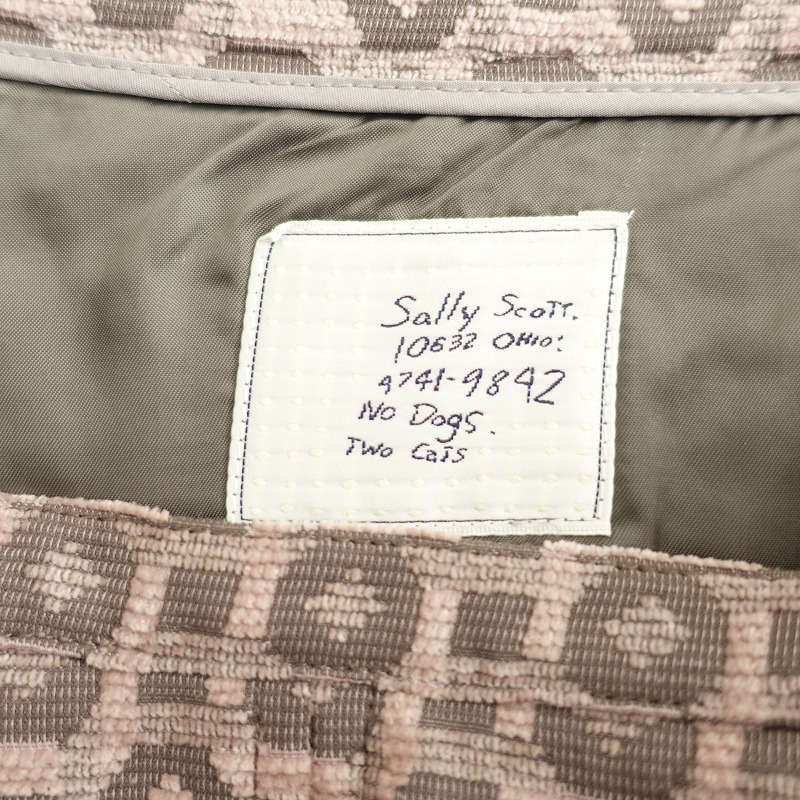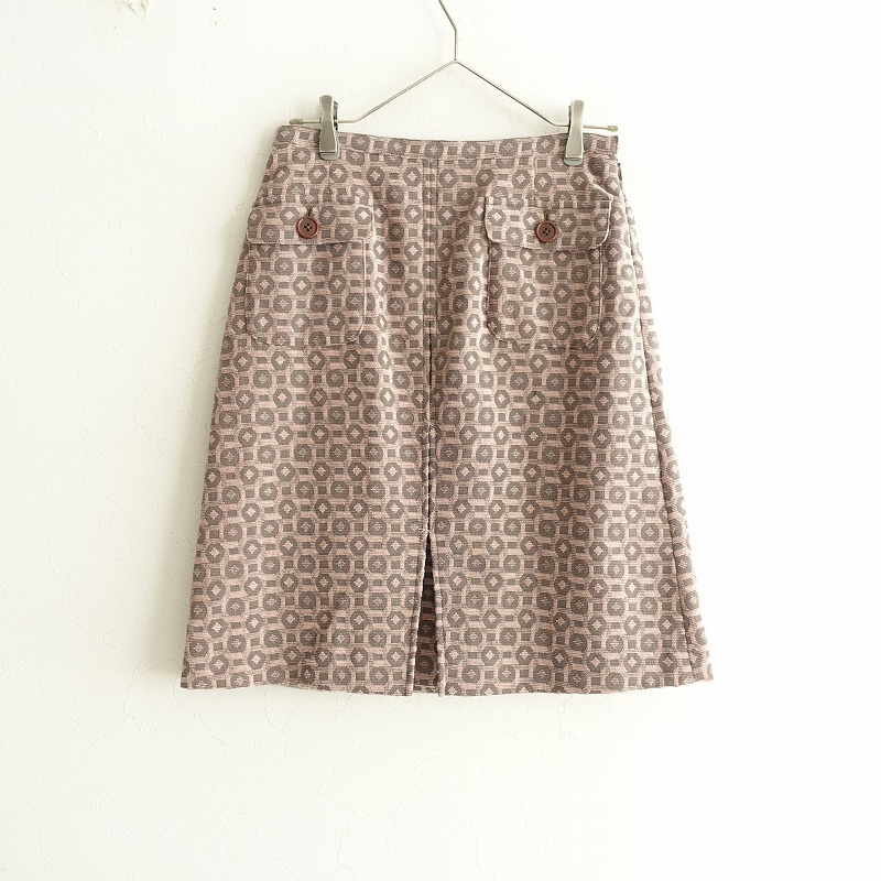 | Sally Scottの総柄ボックスプリーツスカートです。カラーはくすんだピンク・グレー、ウエスト左サイドのジッパー&スナップボタンで着脱でき、前両腰にポケットがございます。裏地付きで、フロントにボックスプリーツが施されております。 |