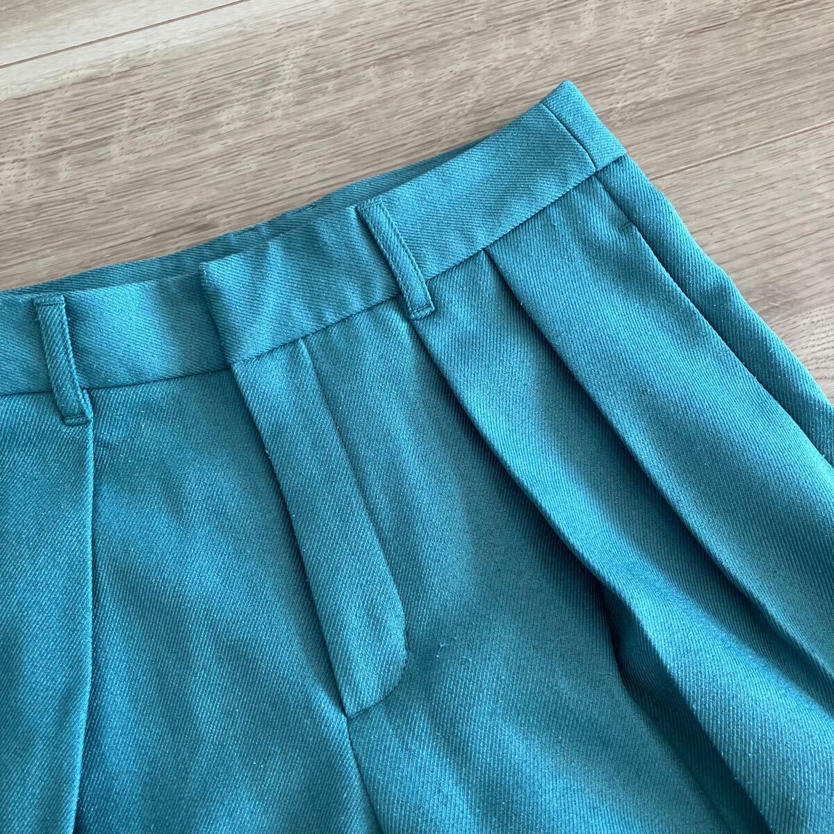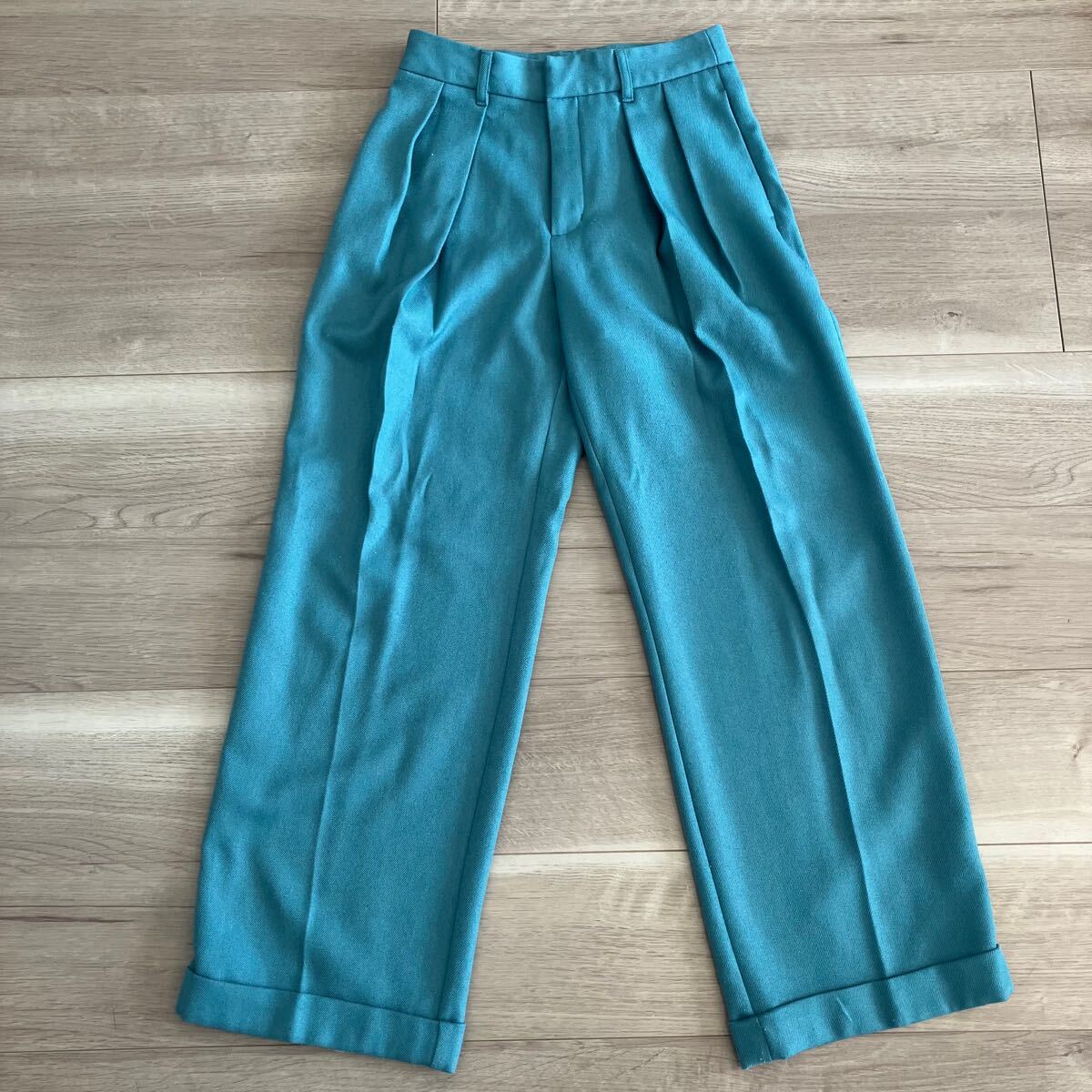 お色は写真の写りよりも青みは少なく、少し深いグリーンかと思います。