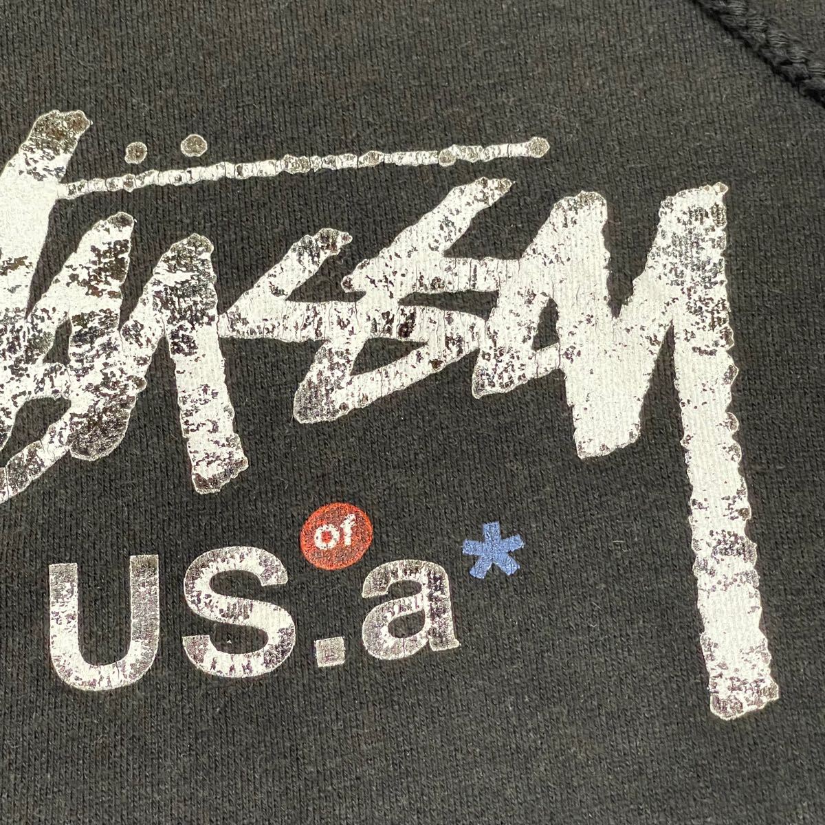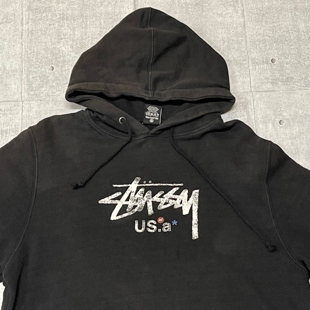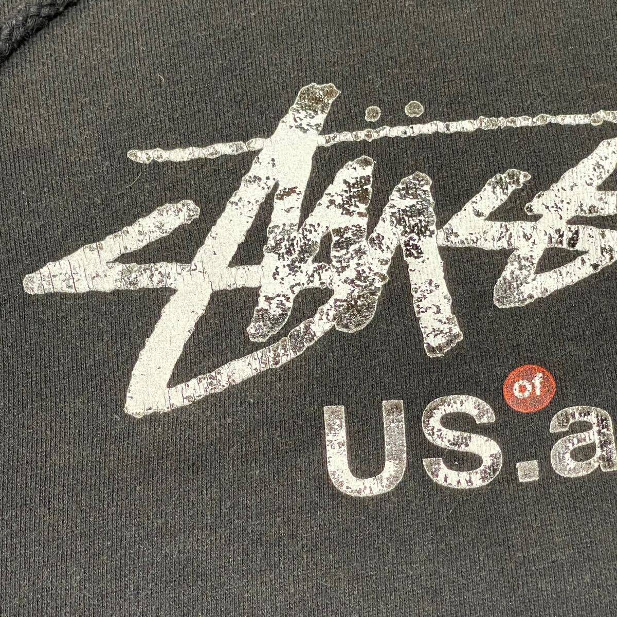 00s STUSSY USA ビッグロゴ フーディー オールドステューシー  00年代 スウェット トレーナー ブラック 黒 裏起毛 vintage加工ロゴ YL1176