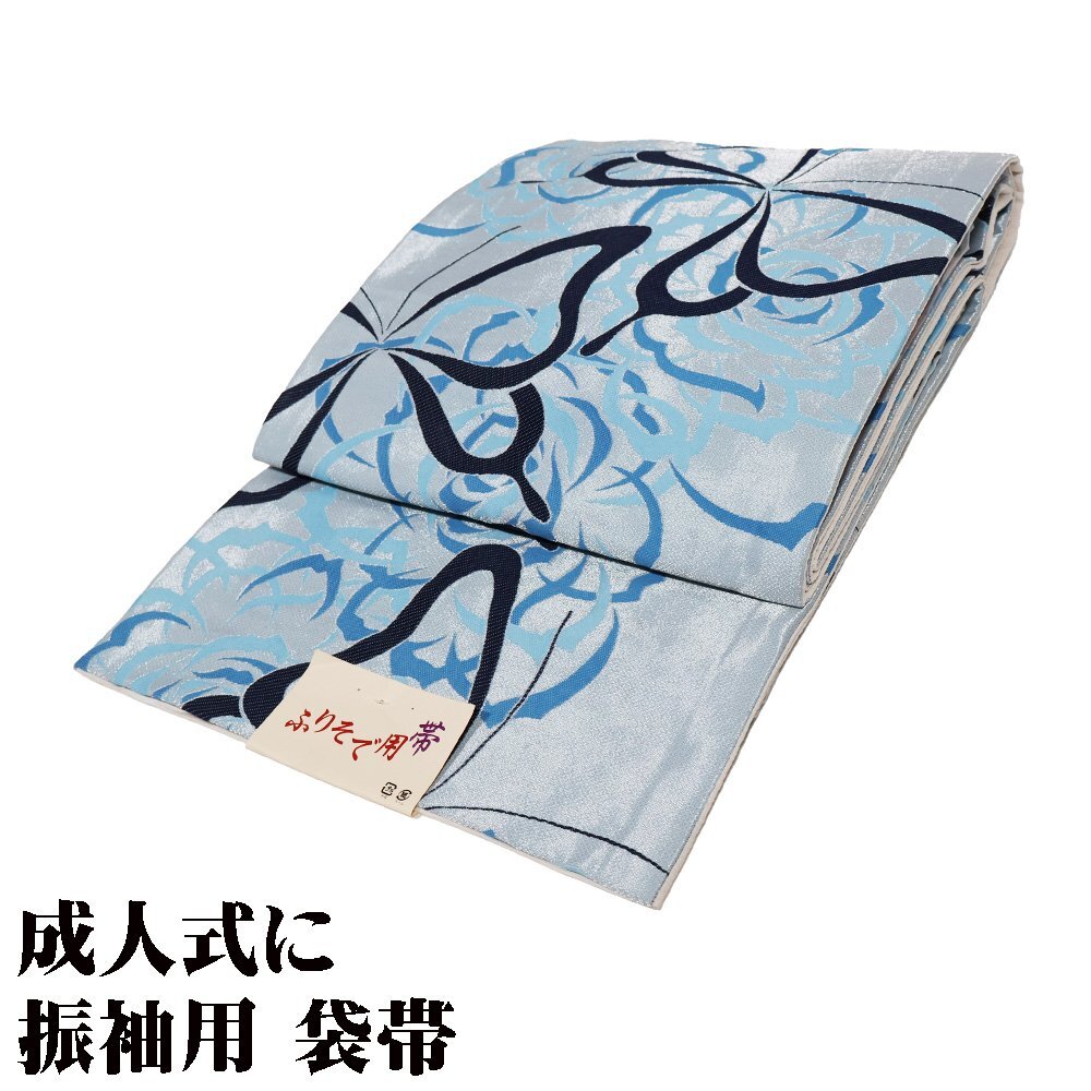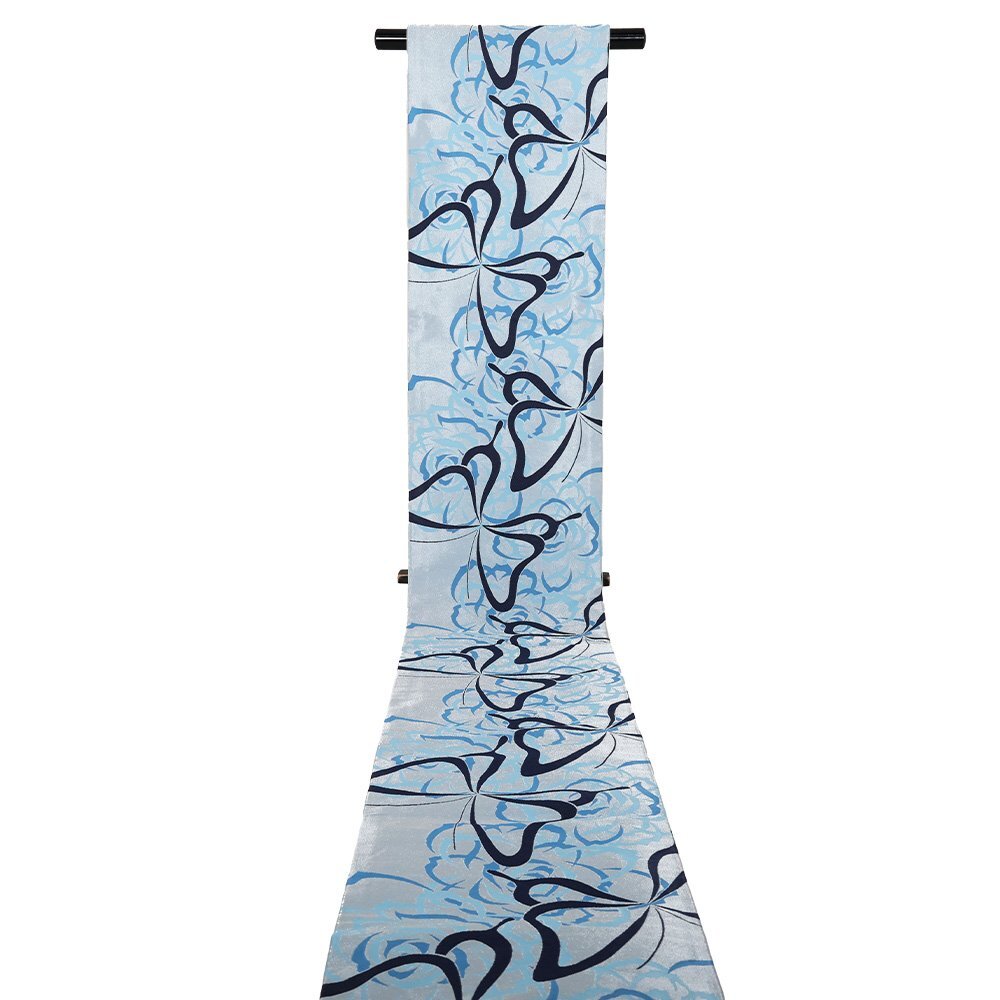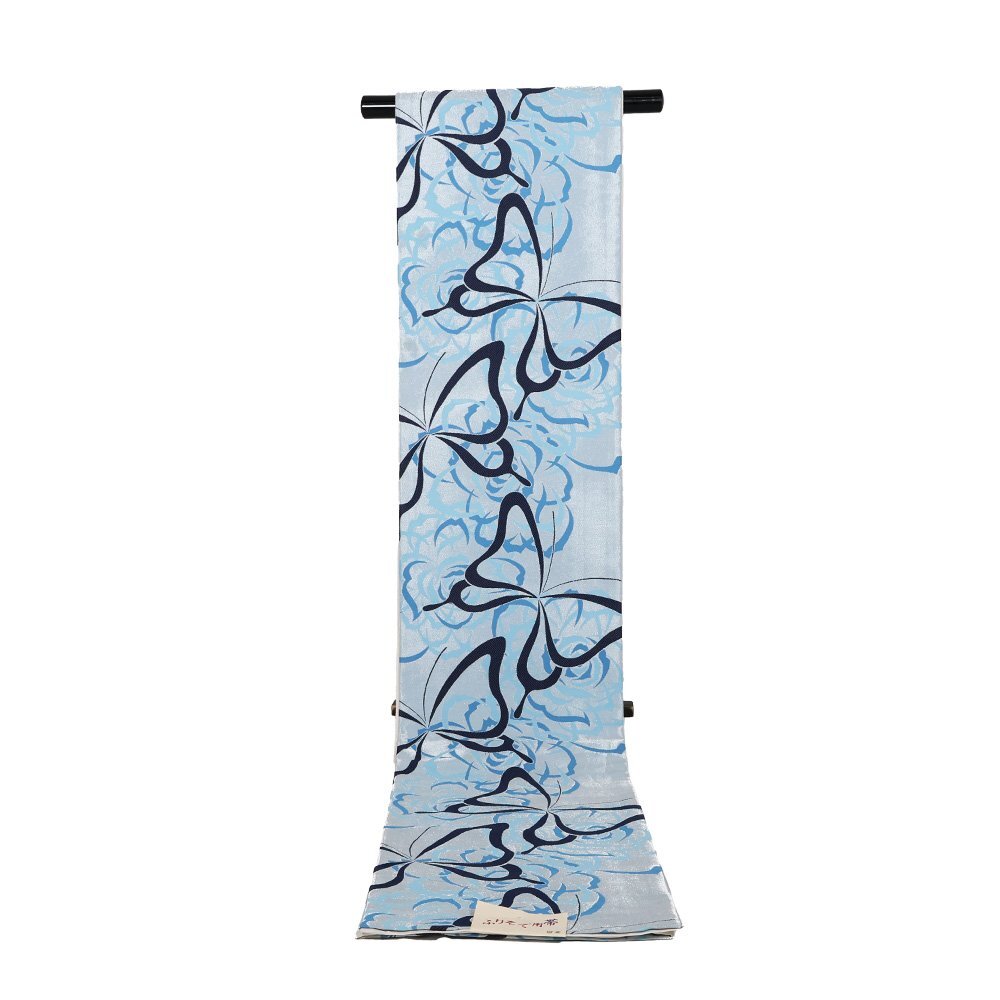 | 袋帯 水色・銀地 蝶 全通 未使用品 仕立て上がり 日本製 | |