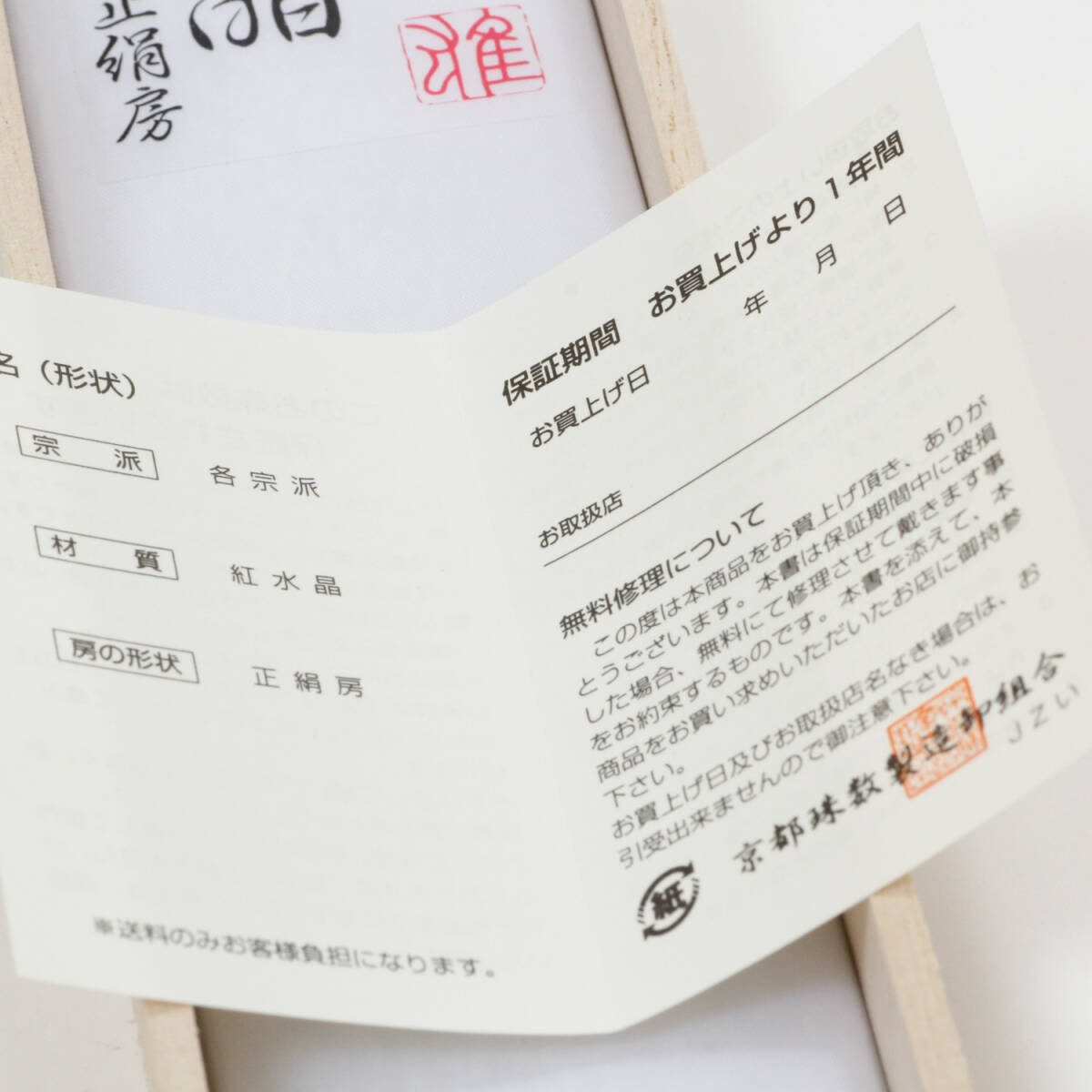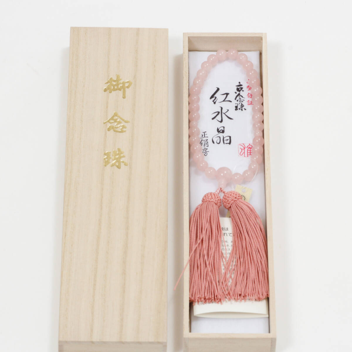 ☆新品・未使用☆ 紅水晶 念珠 数珠 正絹房 桐箱付き 京念珠