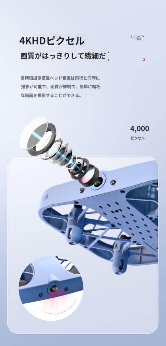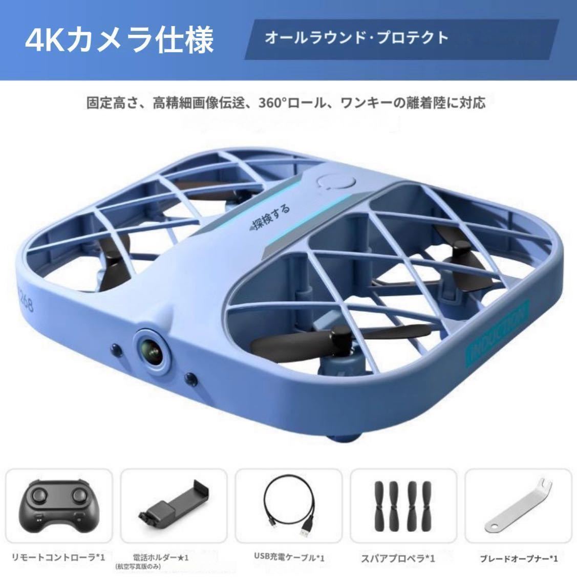 JJRC最新作 全保護デザインドローン こども向け ミニドローン 小型4Kカメラ付き、2個のバッテリー飛行時間最大20分高度保持自動ホバーヘッドレスモードドローン 青 100g未満規制外機種、免許、登録など必要なく、どこでも手軽に飛ばせます!