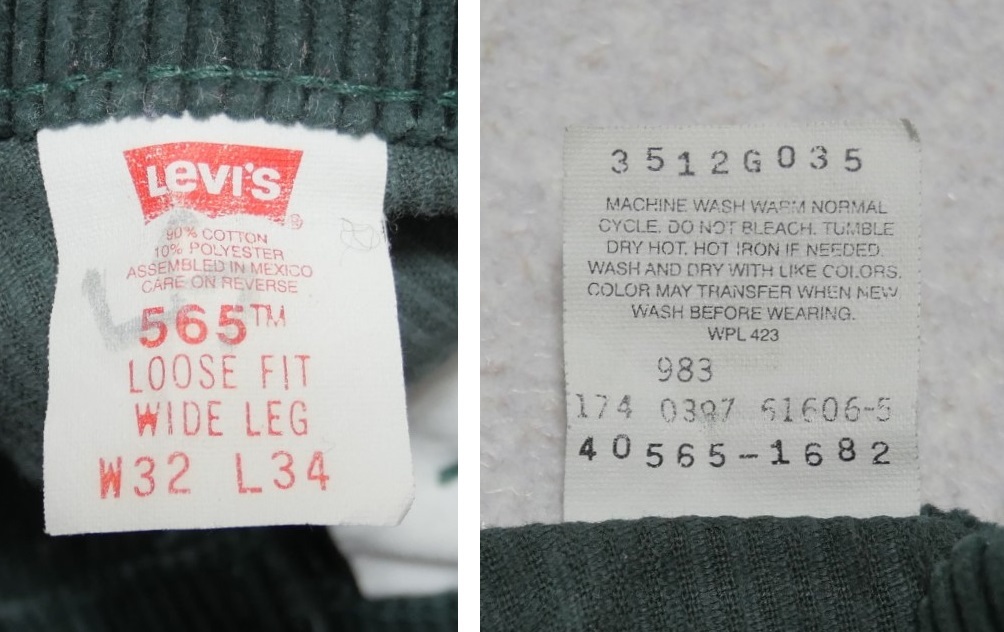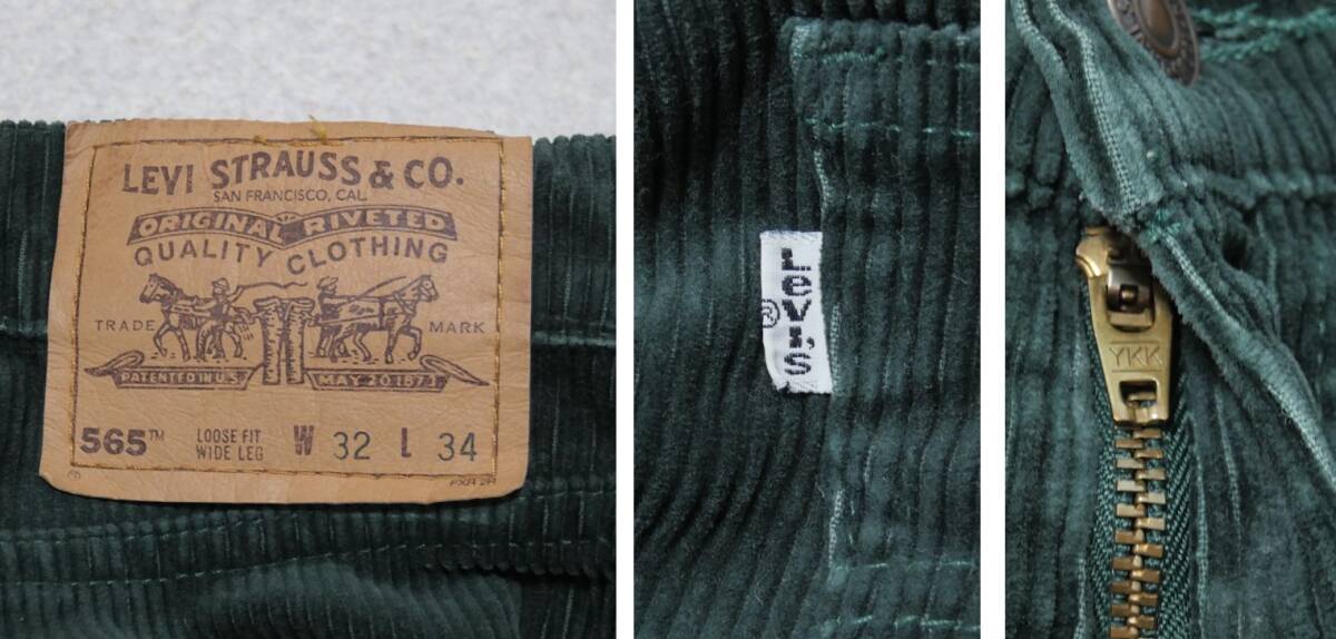 90s Levi's 565 LOOSE FIT WIDE LEG 太畝 コーデュロイパンツ 深緑 W32 リーバイス ルーズフィット ワイドレグ リーバイス 1990年代