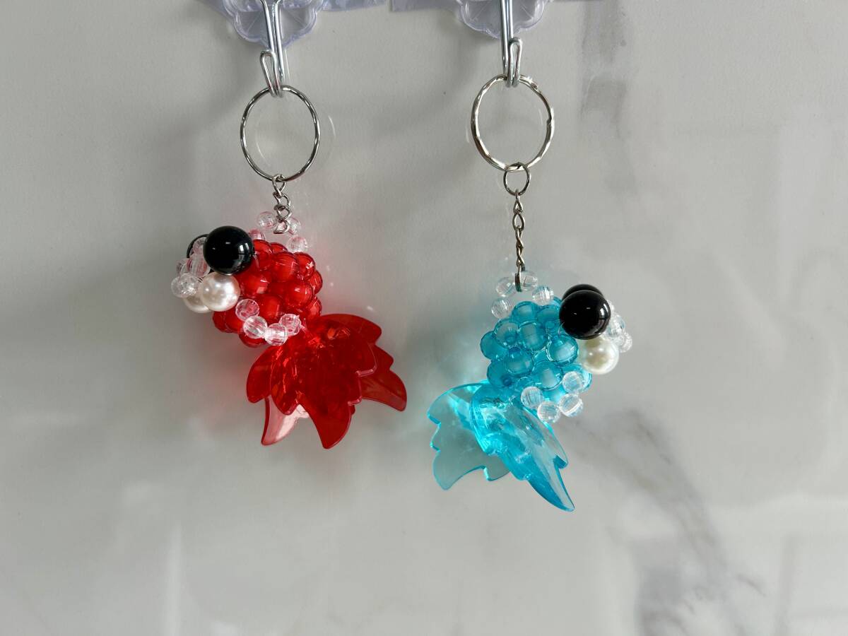 商品はビーズハンドメイド 携帯ストラップ 金魚2体です。