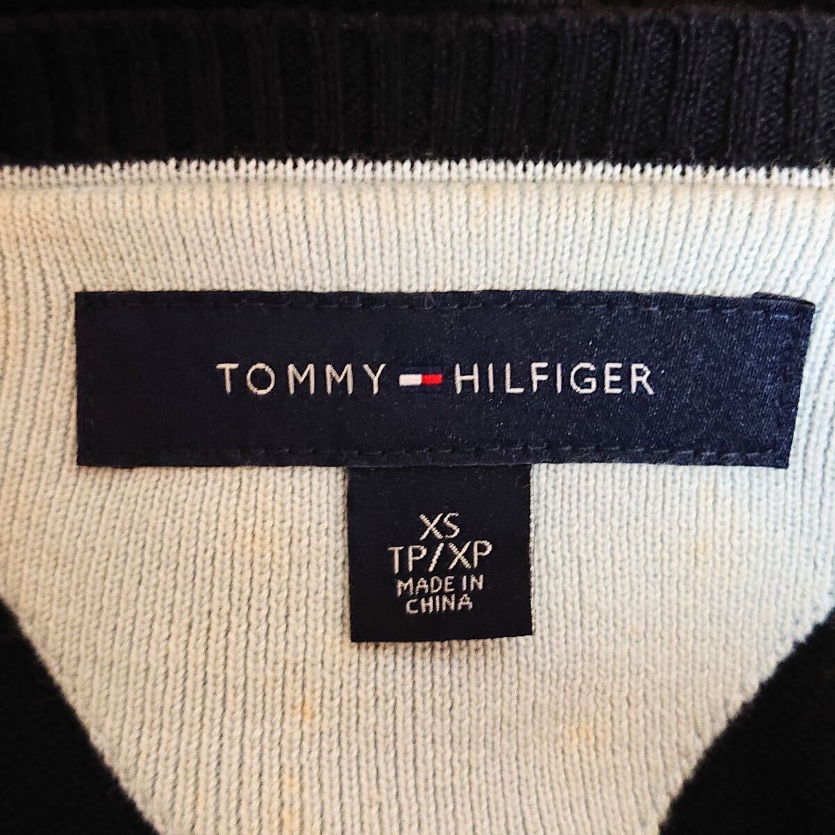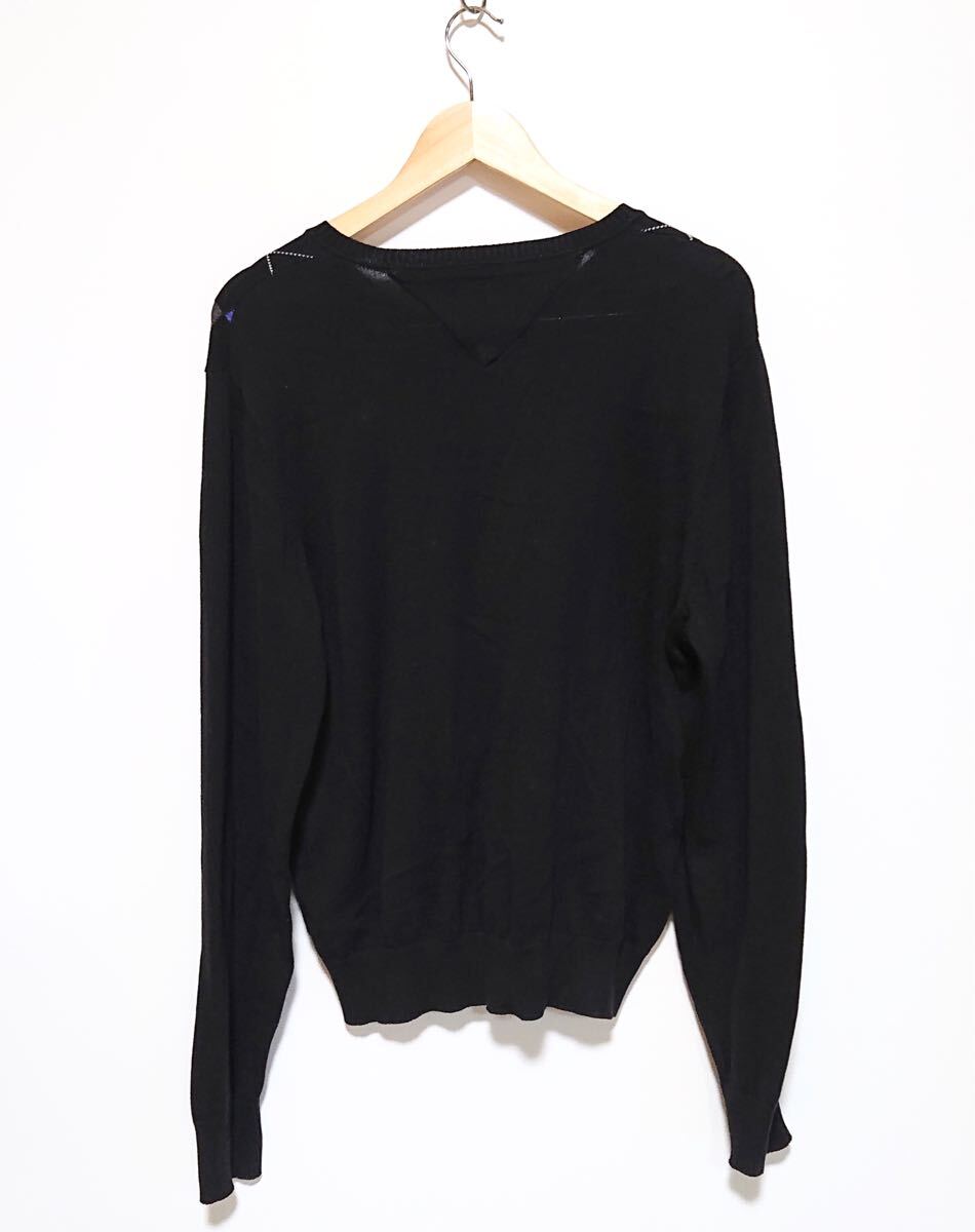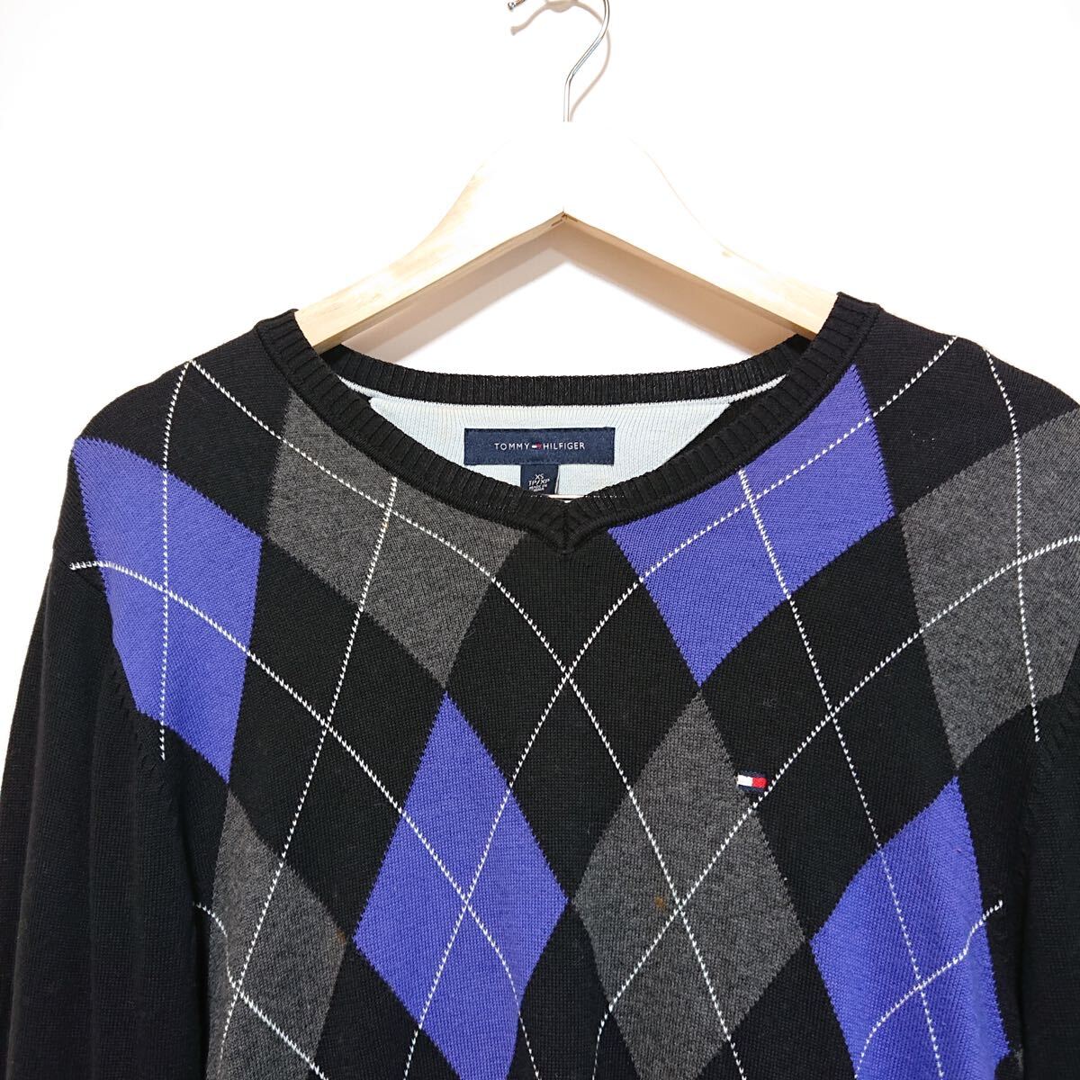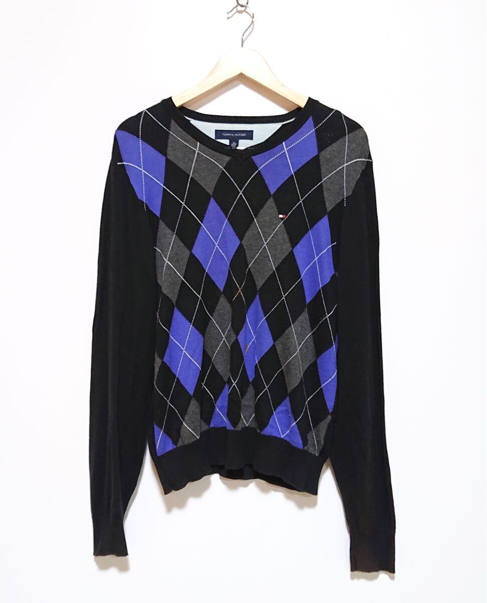 h1595gg TOMMY HILFIGERトミー ヒルフィガー サイズXS セーター ニット アーガイル柄 ブラック×グレー×むらさき メンズ 秋冬トップス 綿