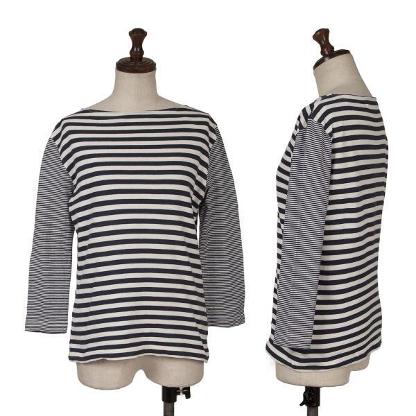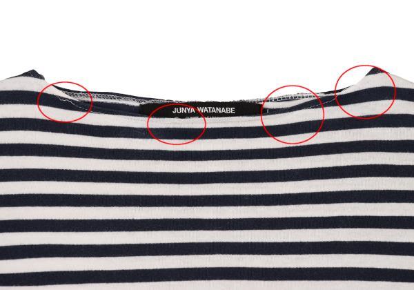 | ジュンヤワタナベ コムデギャルソンJUNYA WATANABE COMME des GARCONS ボーダー切替ボートネック7分袖カットソー 白紺M |