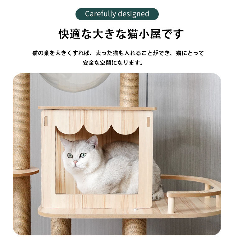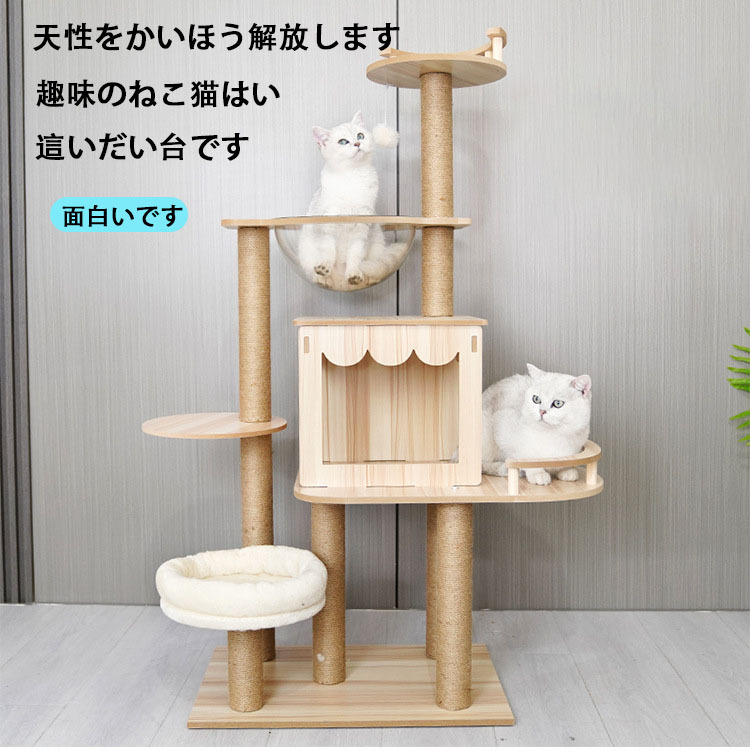 即納 キャットタワー ねこタワー 木製 据え置き型 猫タワー おしゃれ 大型猫 透明宇宙船 安定性 猫ハウス ネコ 支柱 階段設計 高い安定性