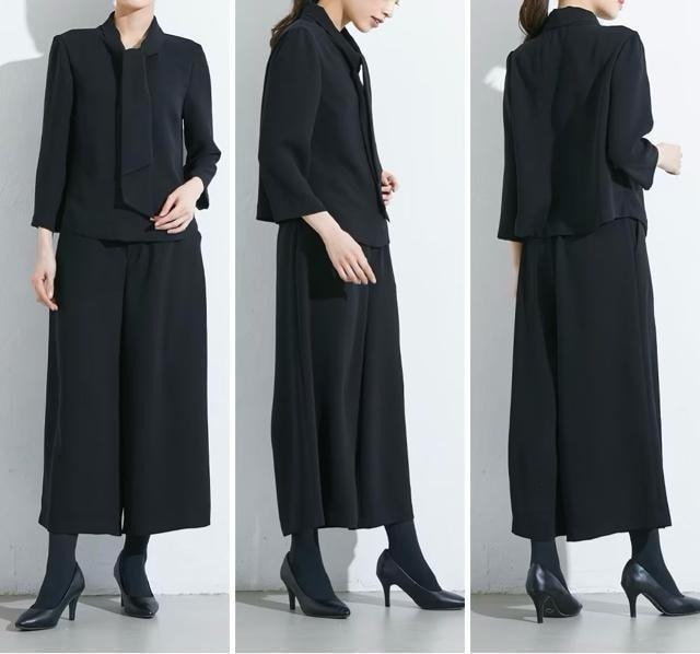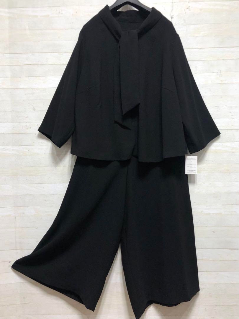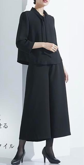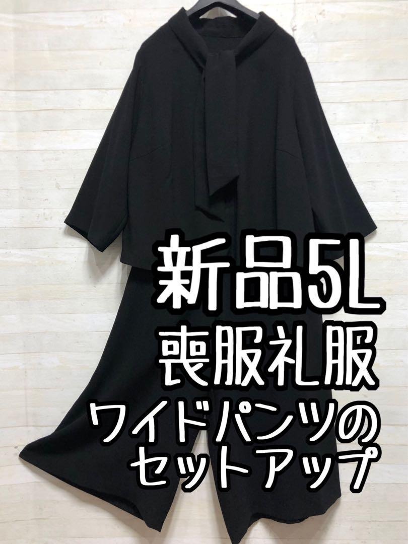 新品☆5L喪服礼服おしゃれなワイドパンツセットアップ黒フォーマル〇D235