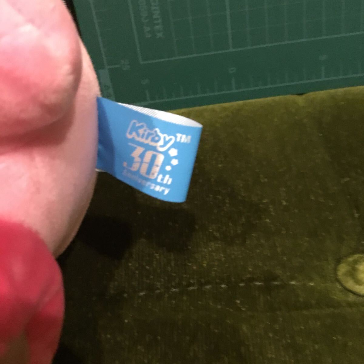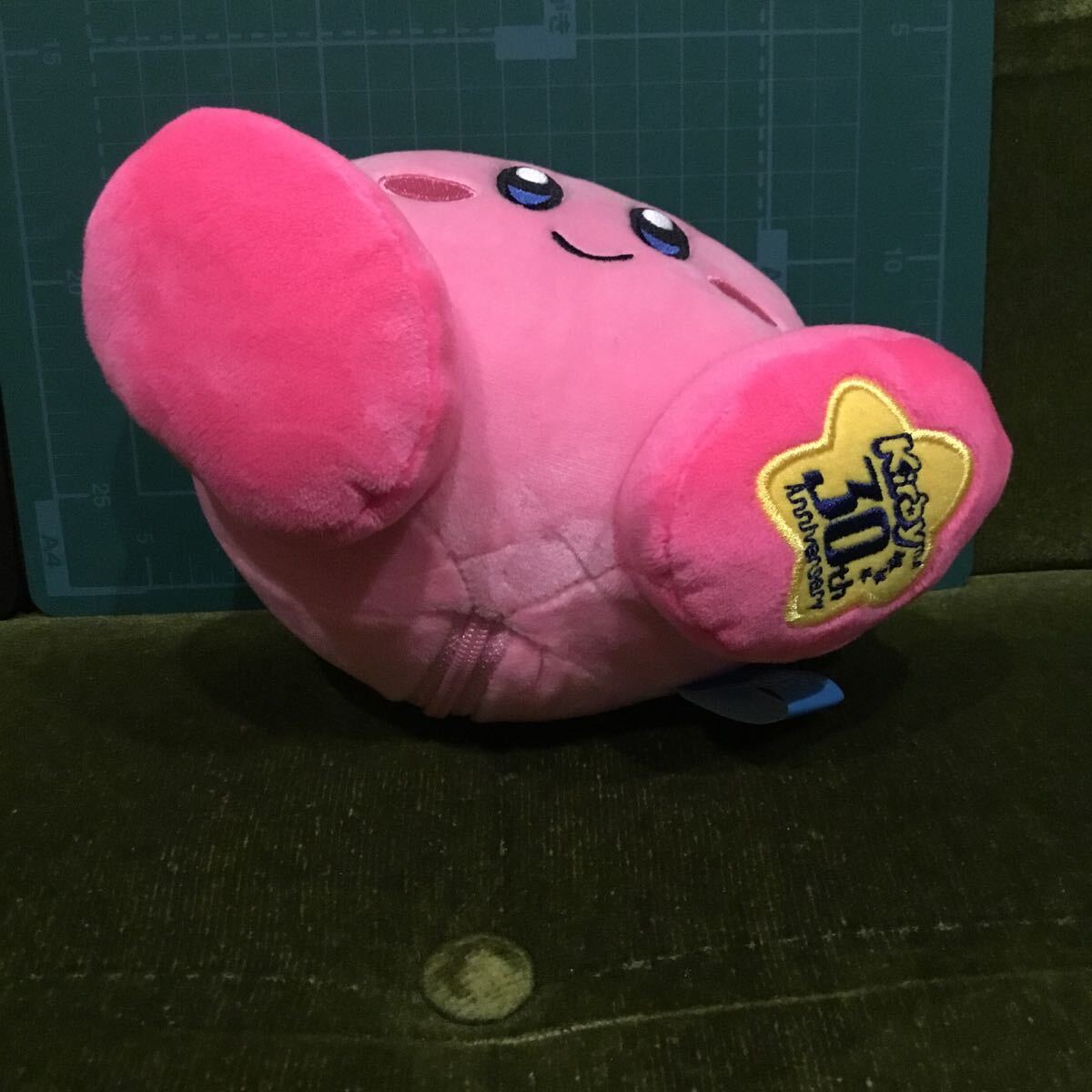 にこにこスマイルのカービィの左あしには、30周年ロゴを刺繍でオン。