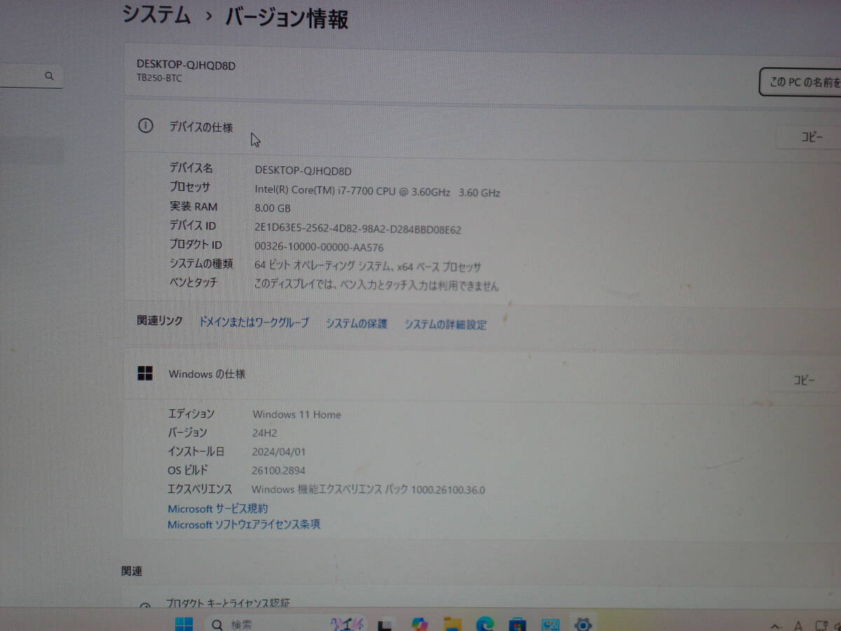 Windows11 Home 64bit システムは最新の24H2になっています。