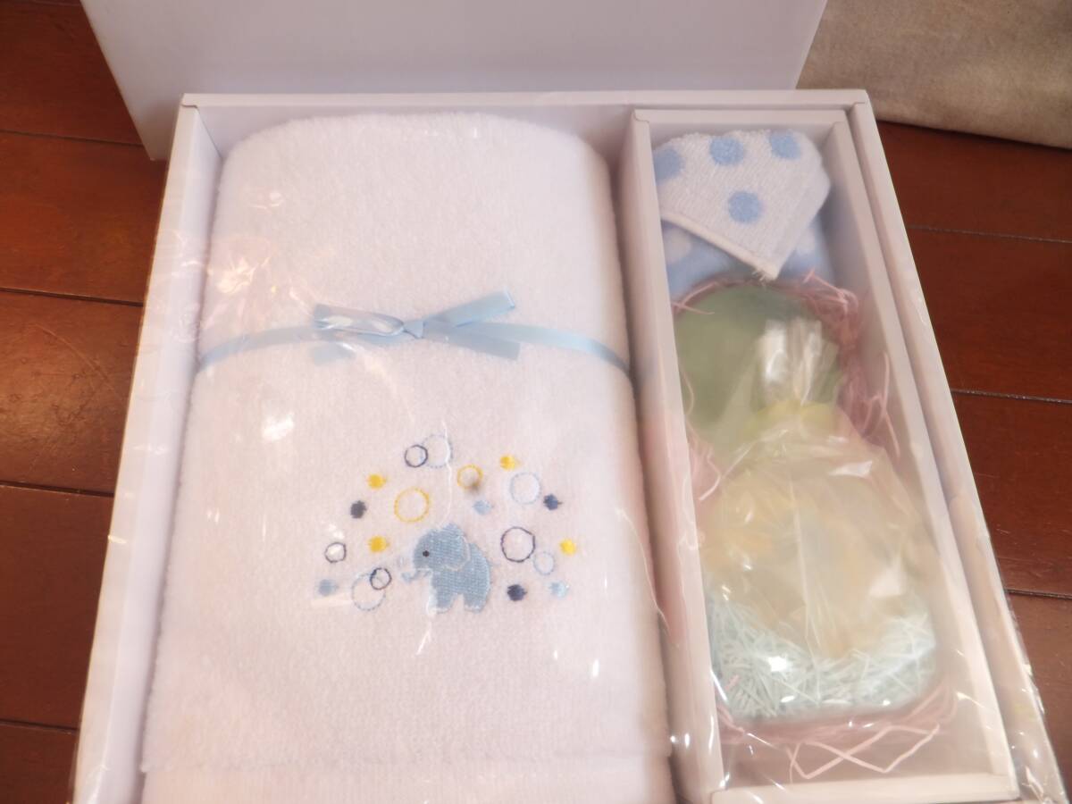 未使用品です。タオルセットです。フェイスタオルとソープです。箱は傷んでいます。自宅保管品ですので神経質な方は御遠慮下さいね。ノークレームノーリターンでお願いいたします。その他いろいろ出品していますので見て下さいね。