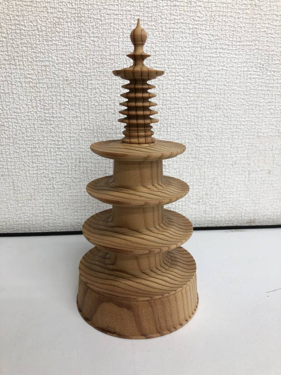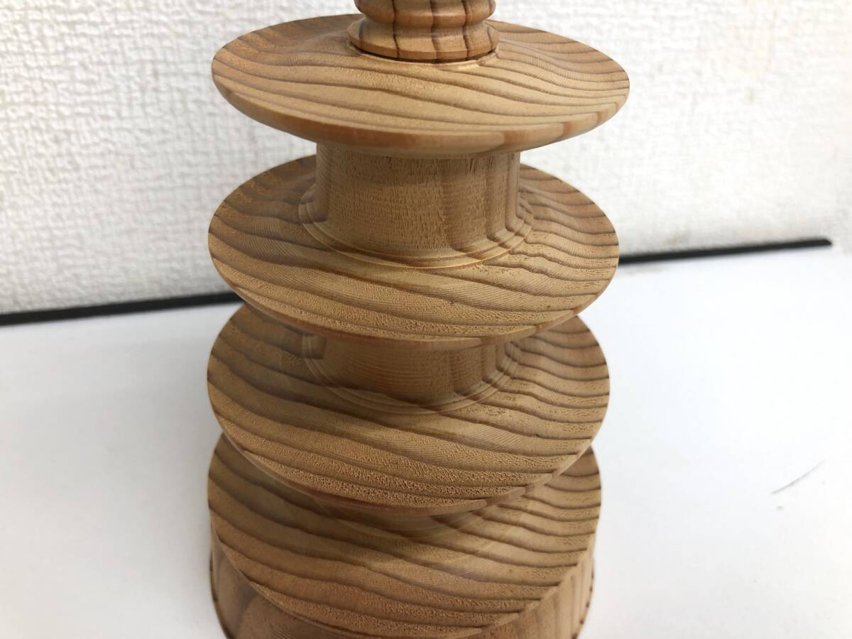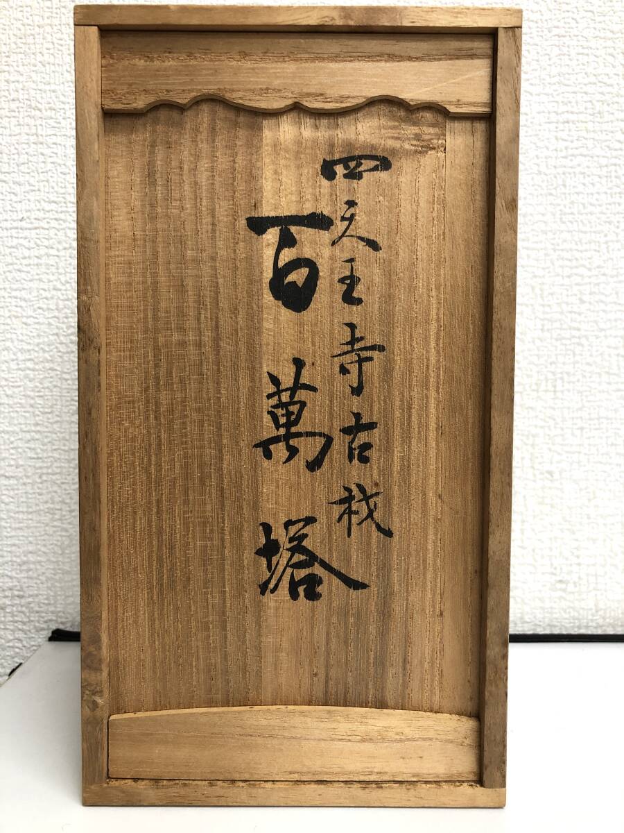【骨董・仏教美術】 四天王寺古材 お経付 百萬塔 百万塔 日本工芸 箱付き 高さ:(約)21.5㎝