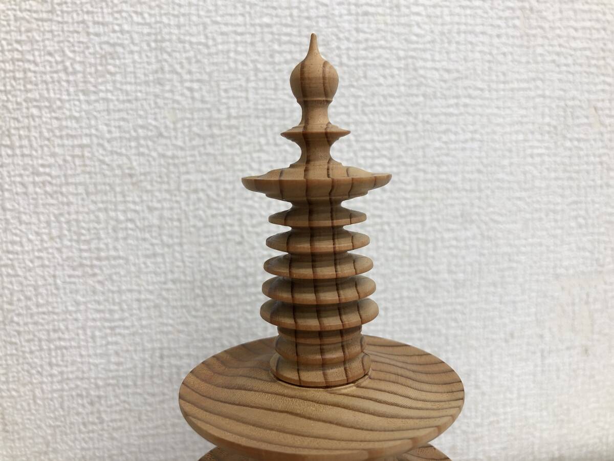 【骨董・仏教美術】 四天王寺古材 お経付 百萬塔 百万塔 日本工芸 箱付き  高さ:(約)21.5㎝