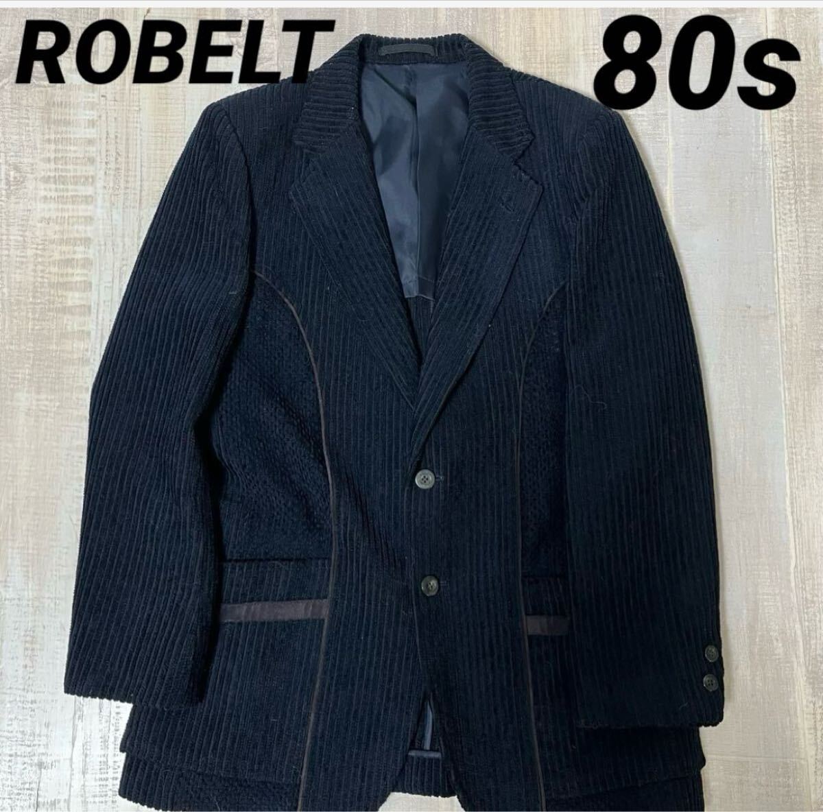 【国産 太畝】80's ROBELT 2B ウール100% コーデュロイ ハンティング テーラード ジャケット VAN RALPH LAUREN NEW YORKER BROOKS BROTHERS RRL ラルフローレン ネイビー