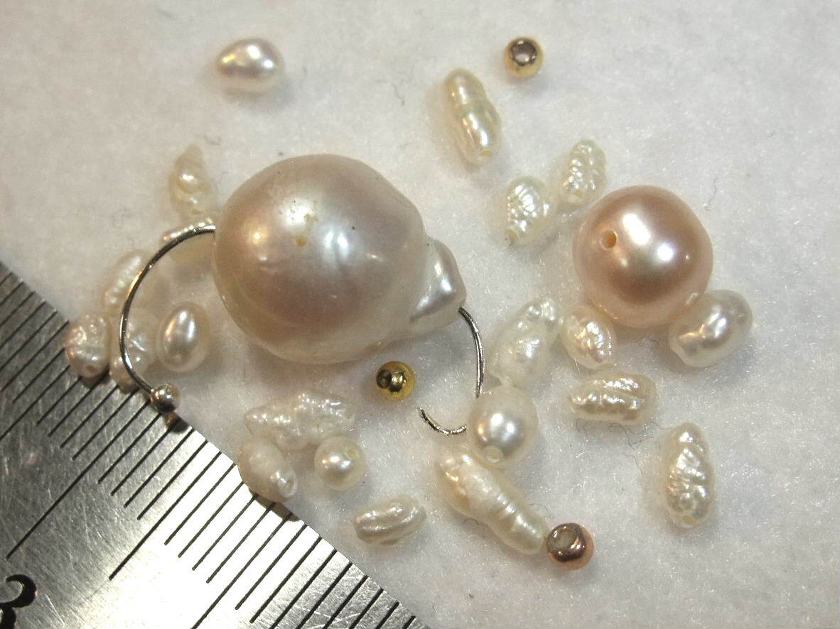 大粒ヘヴィバロックパール☆淡水真珠pearl芥子真珠小粒等他アソート白系メインセット 1 殆どが両穴!まとめておまとめ厄除け魔除け 225-4
