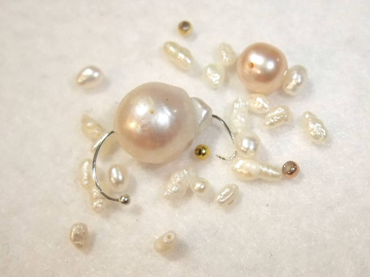 大粒ヘヴィバロックパール!淡水パール色々セット!淡水真珠pearl芥子真珠小粒等他アソート白系ホワイトメイン!殆どが両穴!製作に便利まとめておまとめ!厄除け魔除けのお守り製作に東洋のパワーストーン