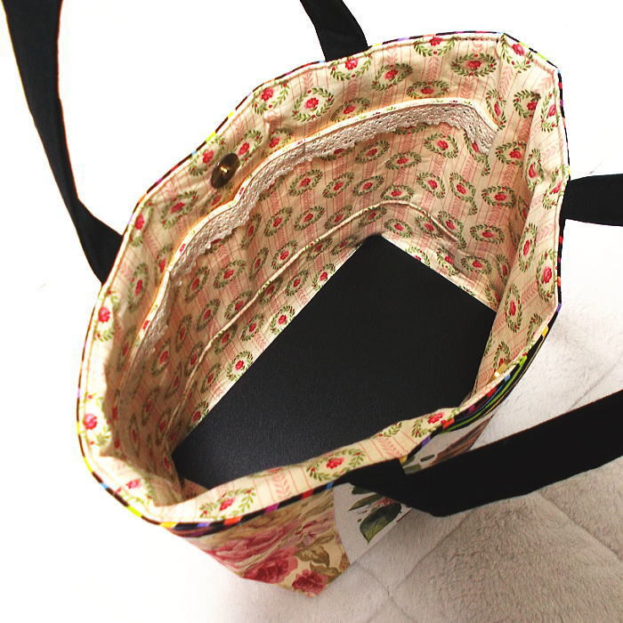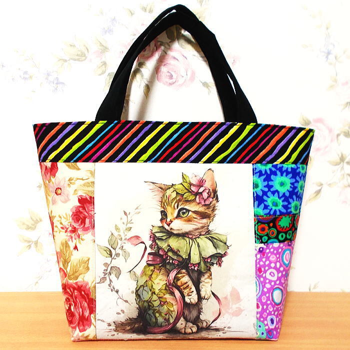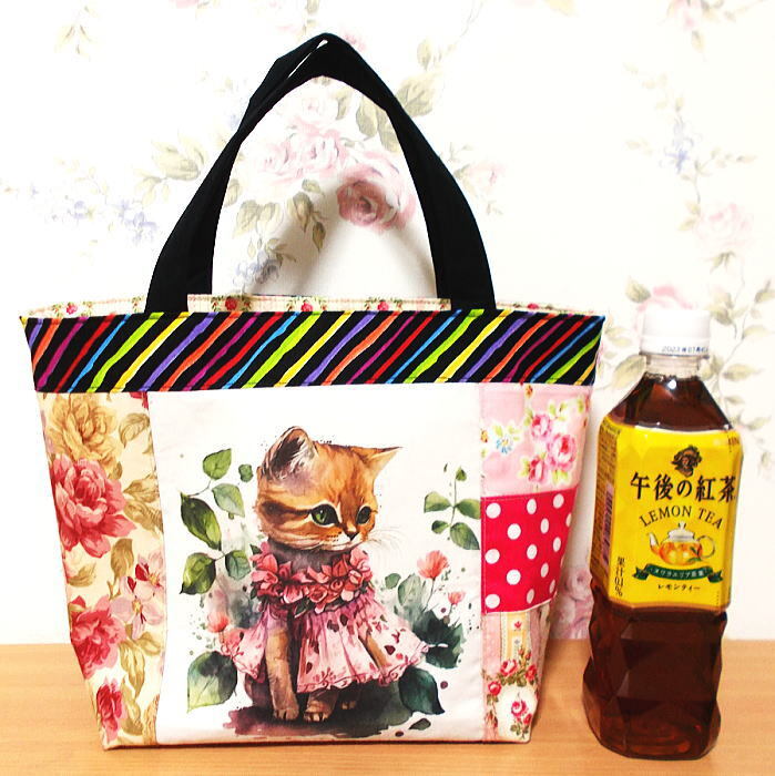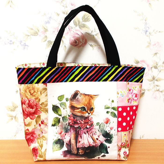 小さめトートバッグ ロマンティックな猫ちゃん お散歩バッグ ランチバッグ 底板付き バッグインバッグ