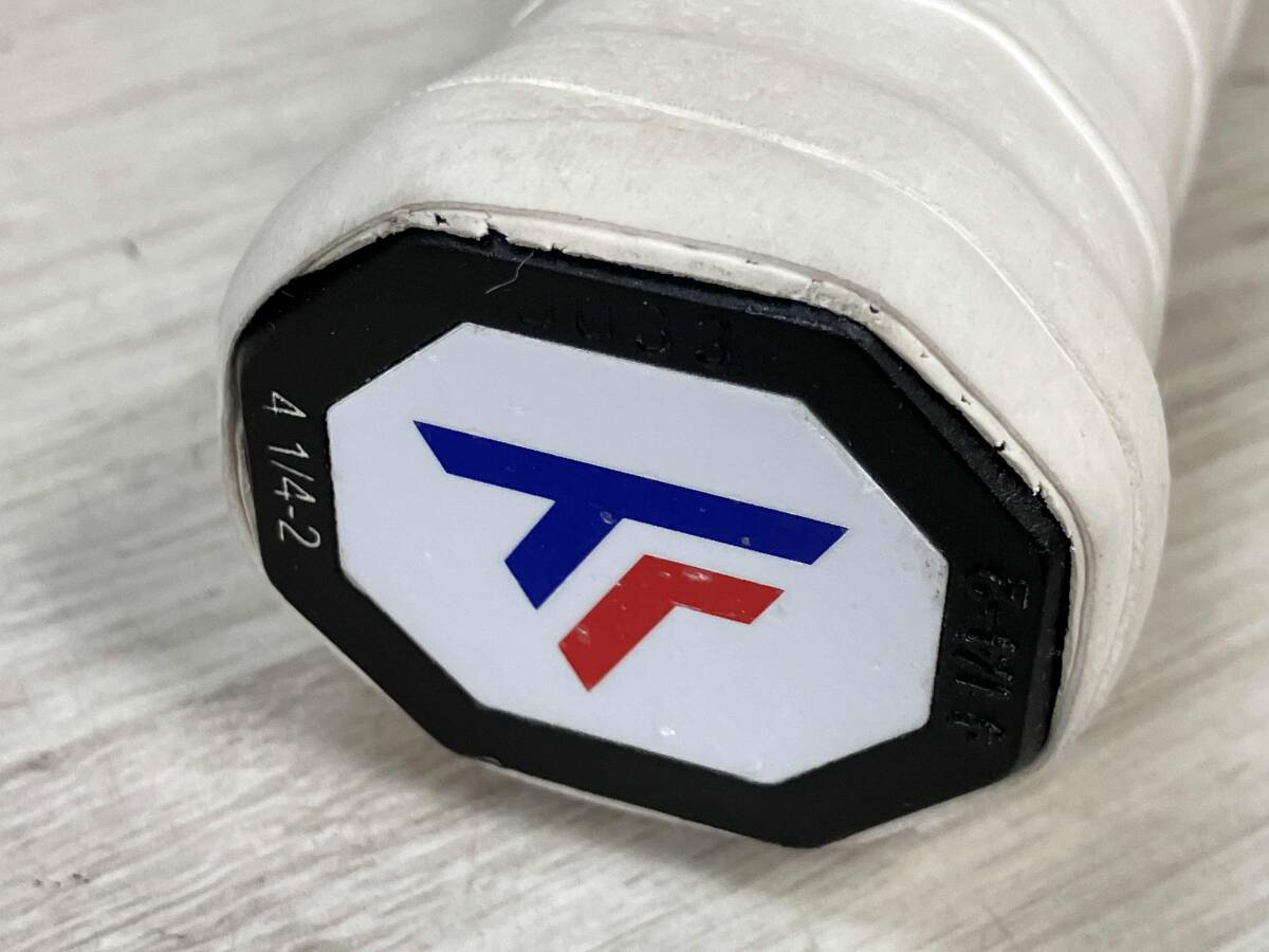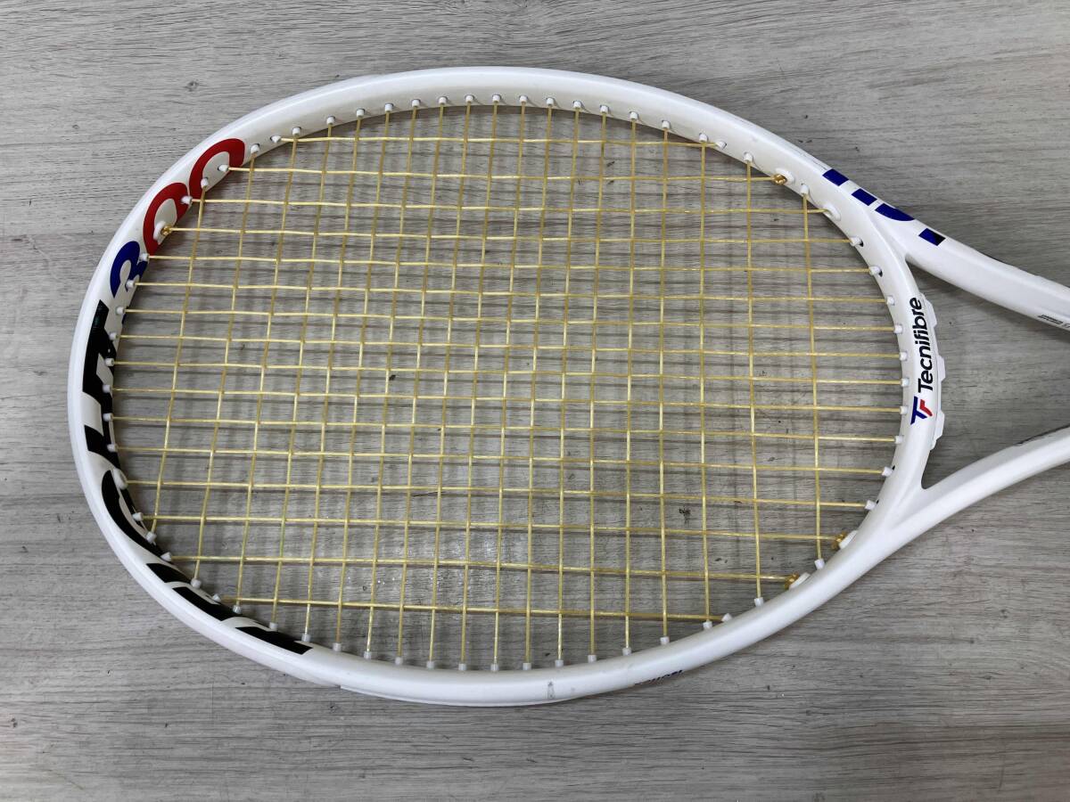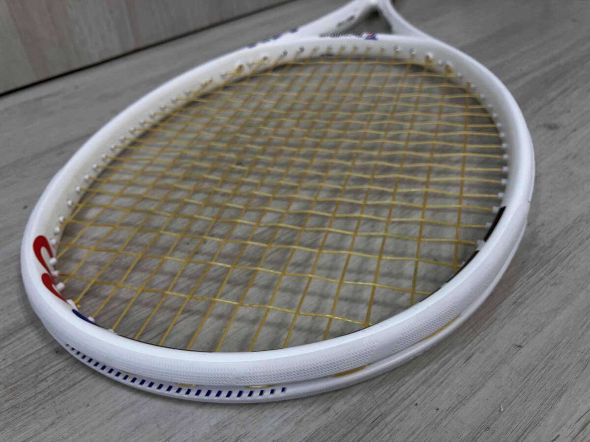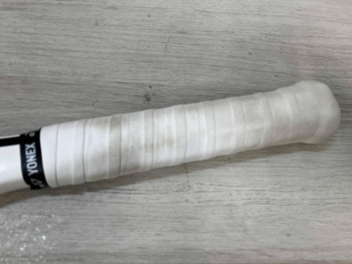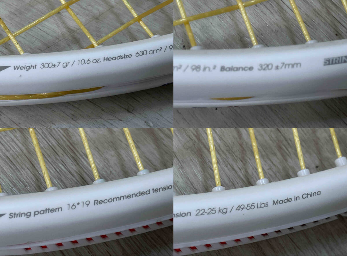 | ラケット情報 付属品は画像のものが全てです グリップ:2 フレーム:98 総重量:約330g ガット:あり グリップ汚れ:あり フレーム擦れ:少々あり、汚れ、色移りあり テンションシールの日付けが消えています |