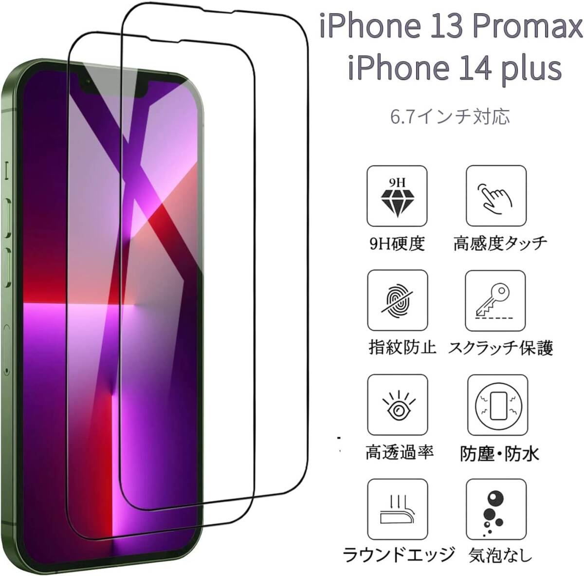 iPhone 13 Promax 強化ガラスフィルム 6.7インチ 高透過率 全面保護フィルム 指紋付着防止 気泡防止 滑らかなタッチ操作 【2枚入り】I50