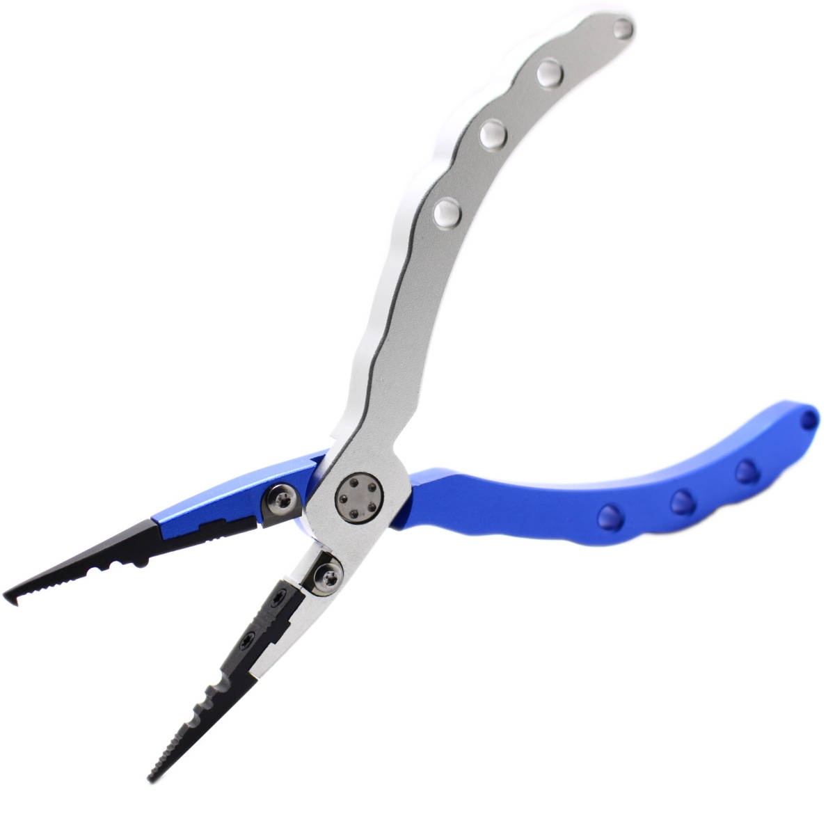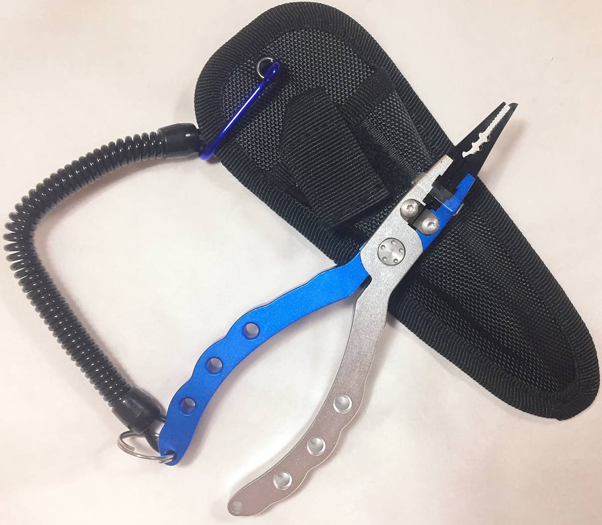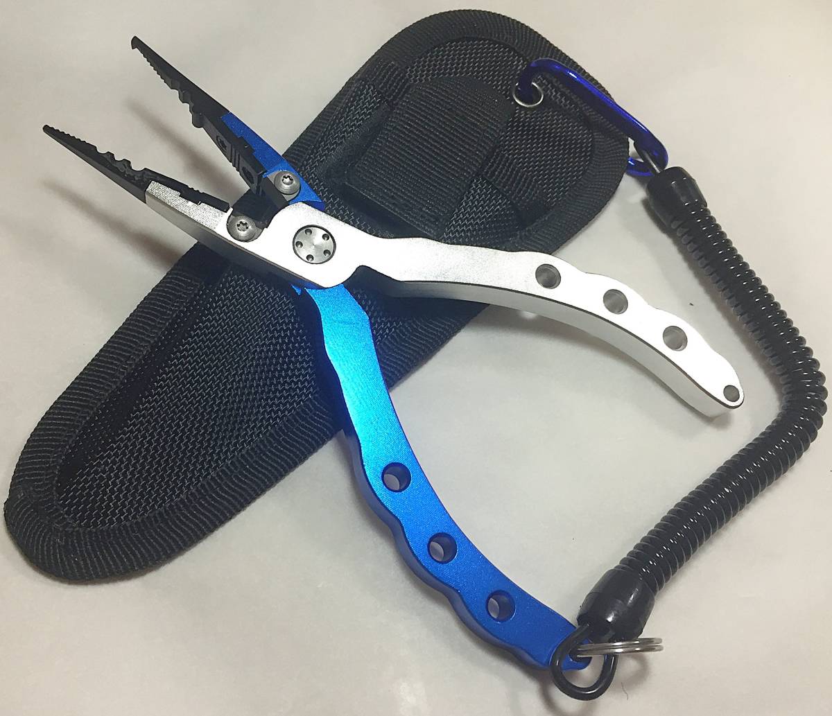 軽量アルミ製 フィッシングプライヤー ブルー スリムタイプ PEラインカッター スプリットリング外し等 多機能
