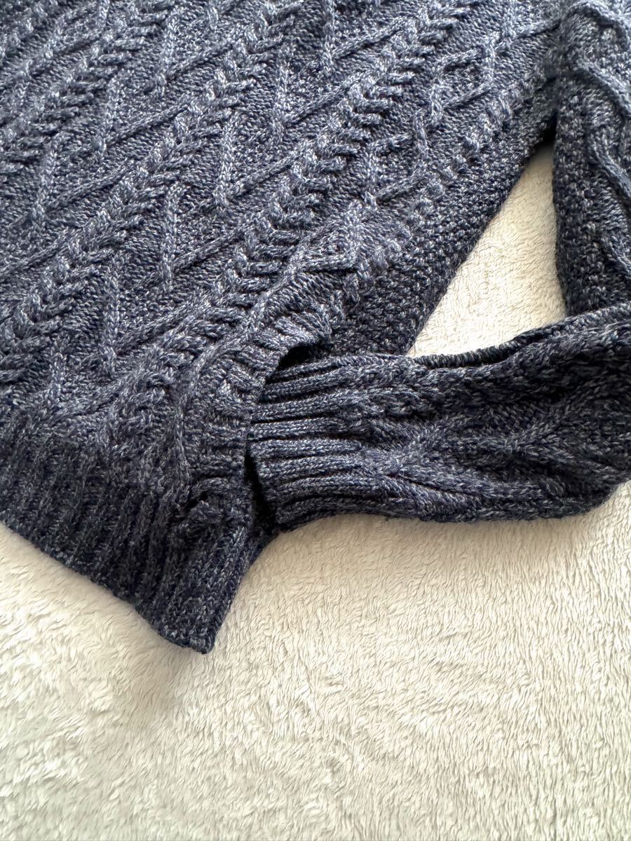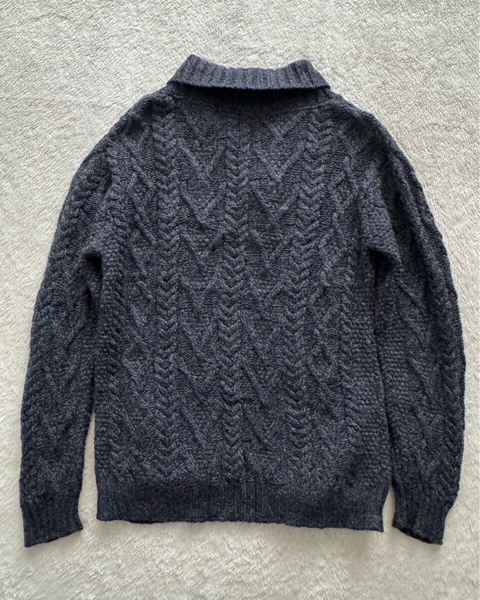 ・上質なメリノウールを使用し通常の編みよりも2、3倍も素材が必要で贅沢なアラン編み柄デザインを採用したとてもお洒落なプルオーバーのセーターになります。