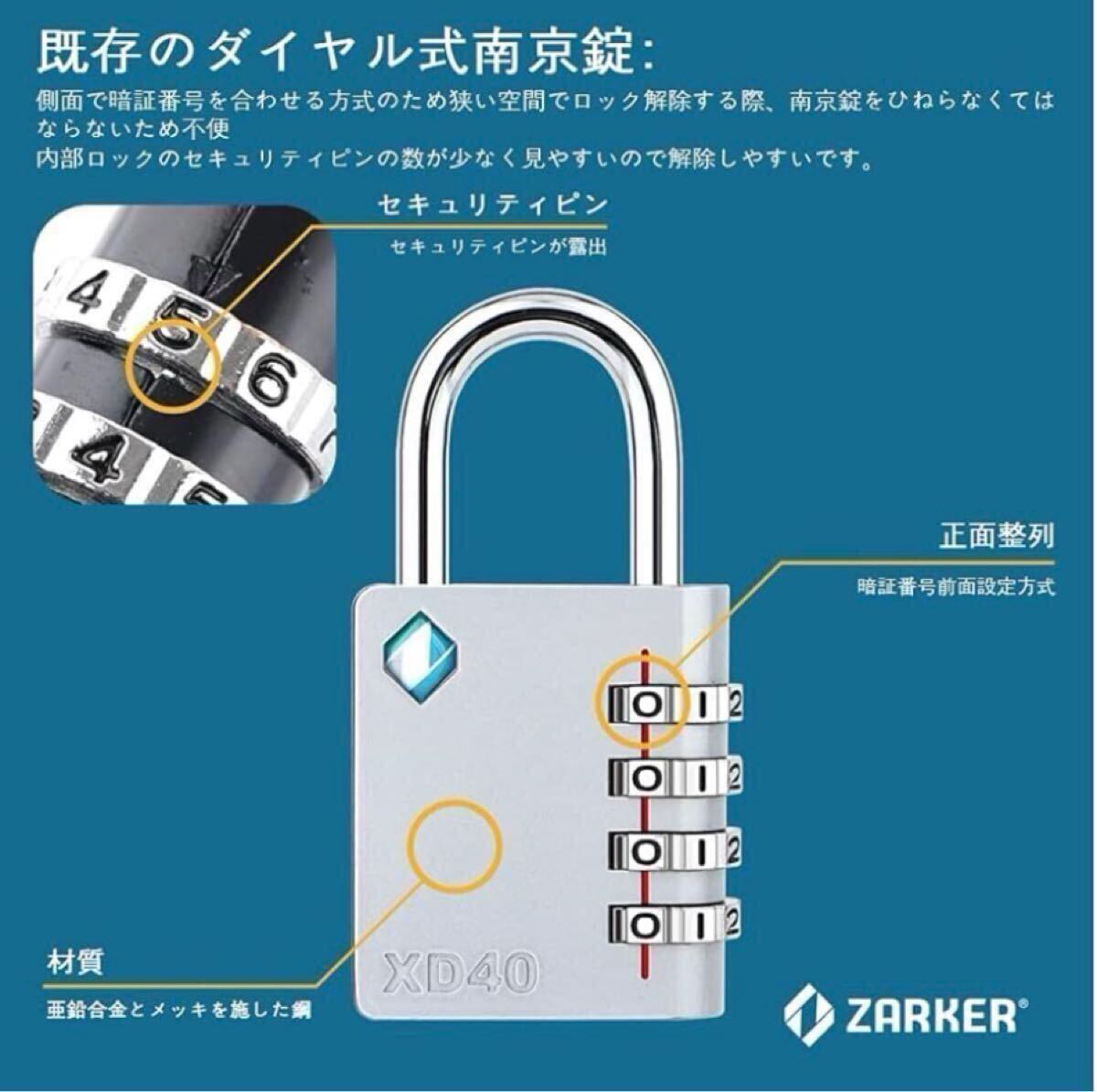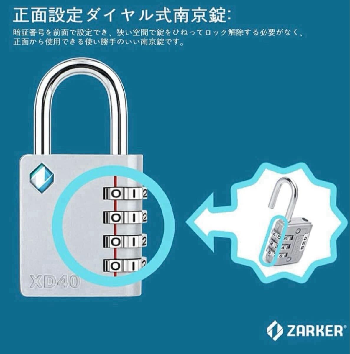 ダイヤル式ロックのセキュリティ:暗証番号は安全性を高めるために10,000通りの組み合わせが可能。ほとんどの南京錠は、ダイヤル下のセキュリティピンが1つだけの構造のために簡単に開けられてしまいます。ZARKERは4つのセキュリティピンを備えており、盗難から守り、セキュリティ性を高めます。