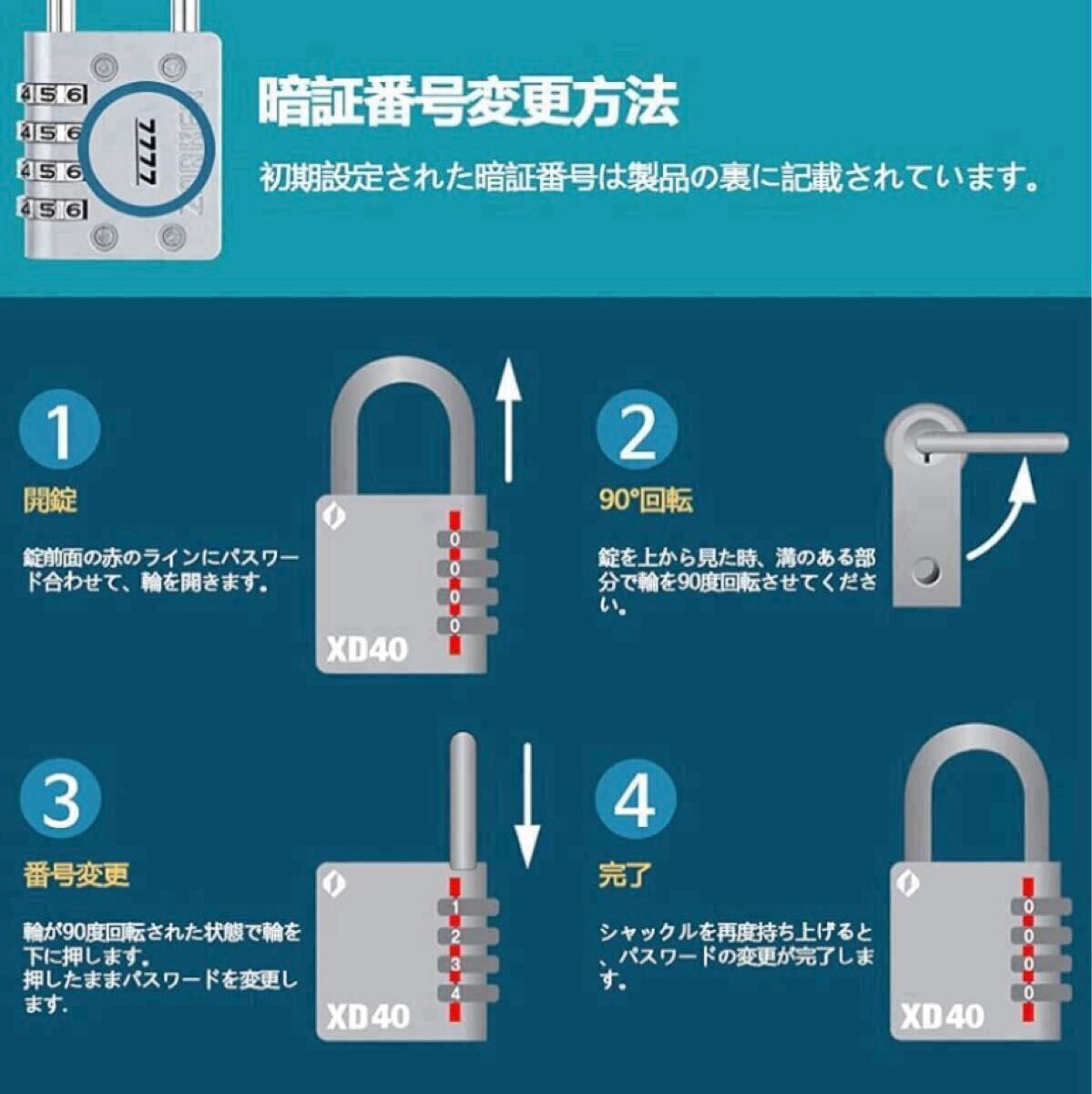 暗証番号の再設定可能:暗証番号は正面に揃えるスタイルで、狭いスペースでも不便なくお使いいただけます。正面での並べ替え再設定:暗証番号設定は、4桁の数字を正面で行え、組み合わせが簡単に設定できます。暗証番号を変更するために追加ツールは必要ありません。