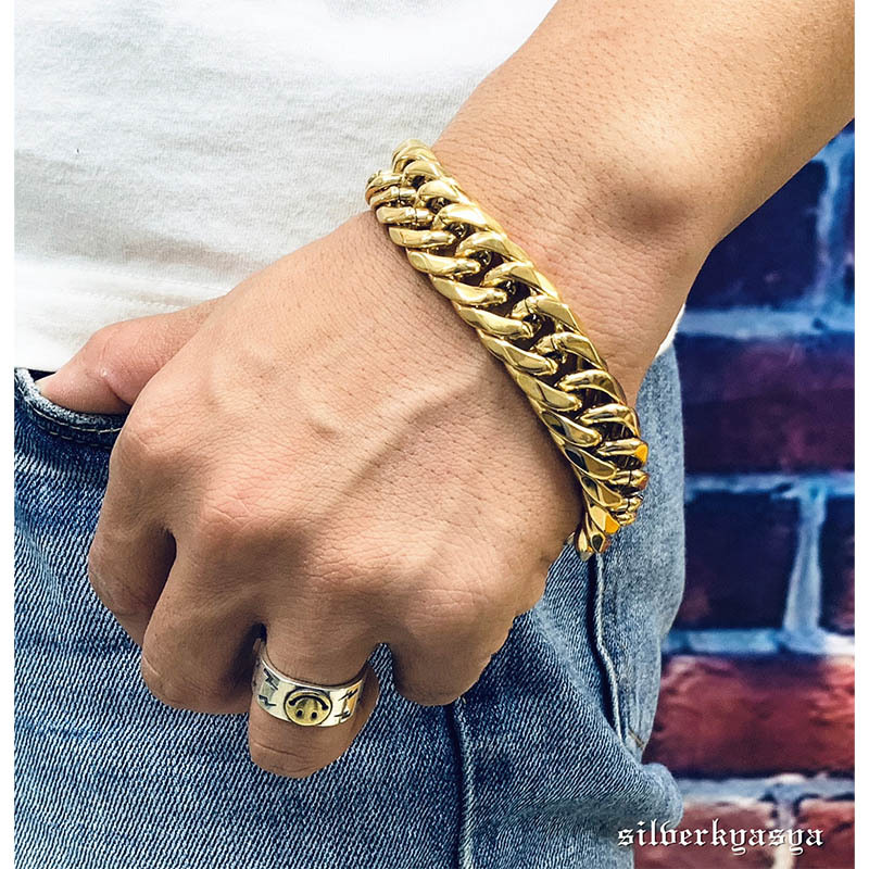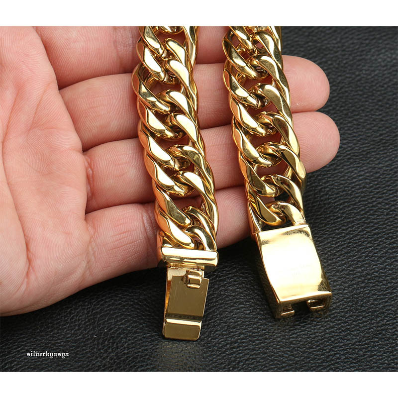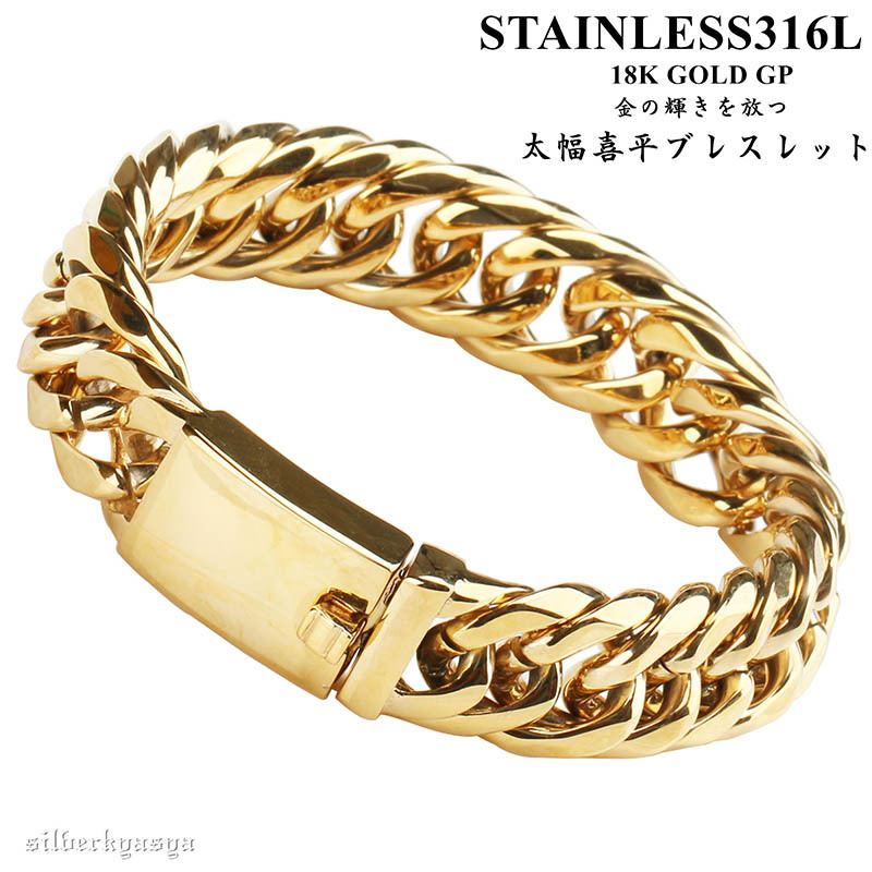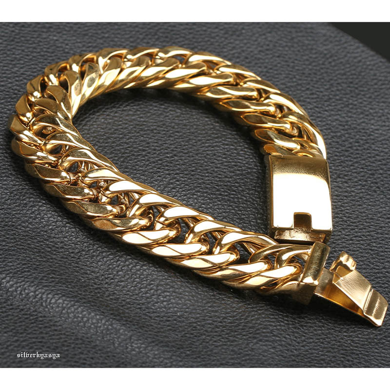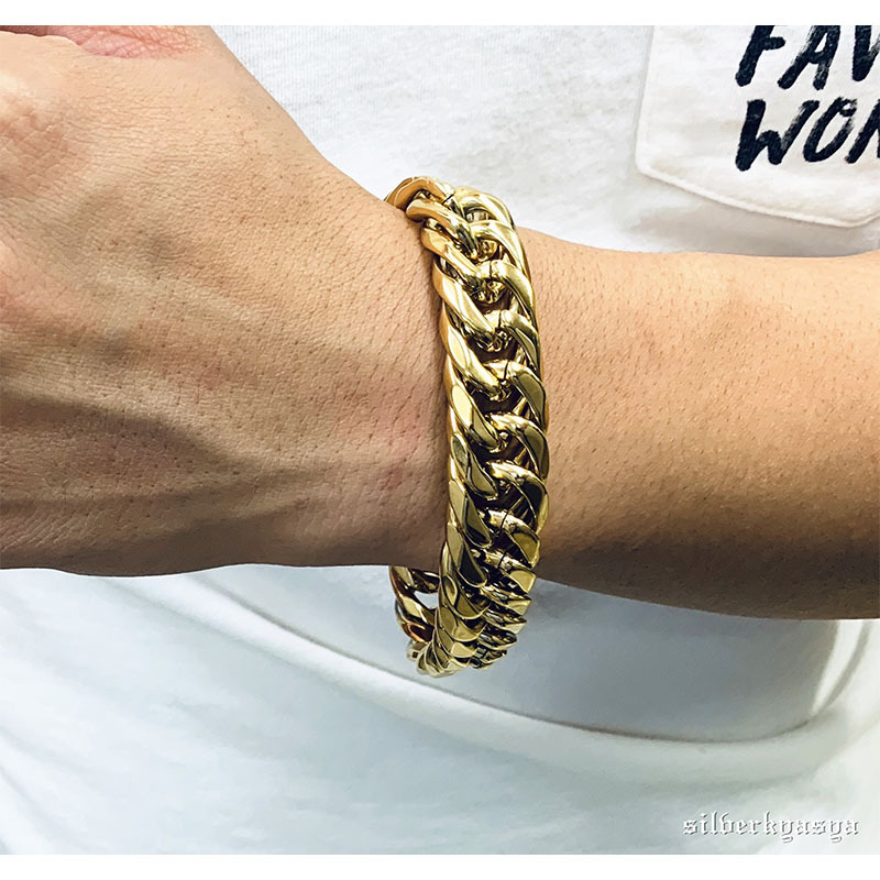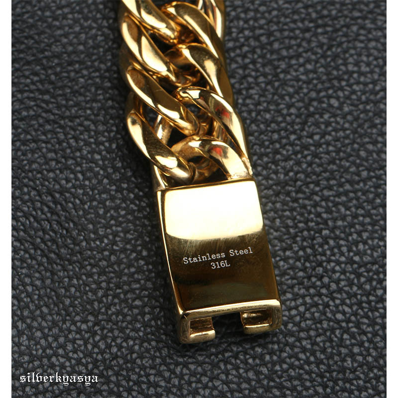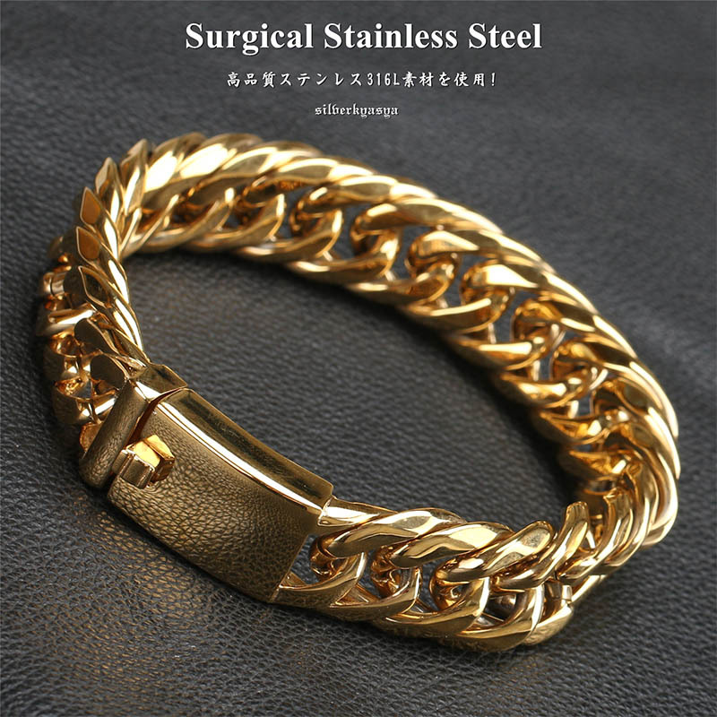 重厚 ステンレス ダブル喜平 ブレスレット ゴールド 16mm 太幅 高品質ステンレス ハード系 人気 メンズブレスレット