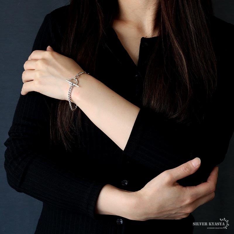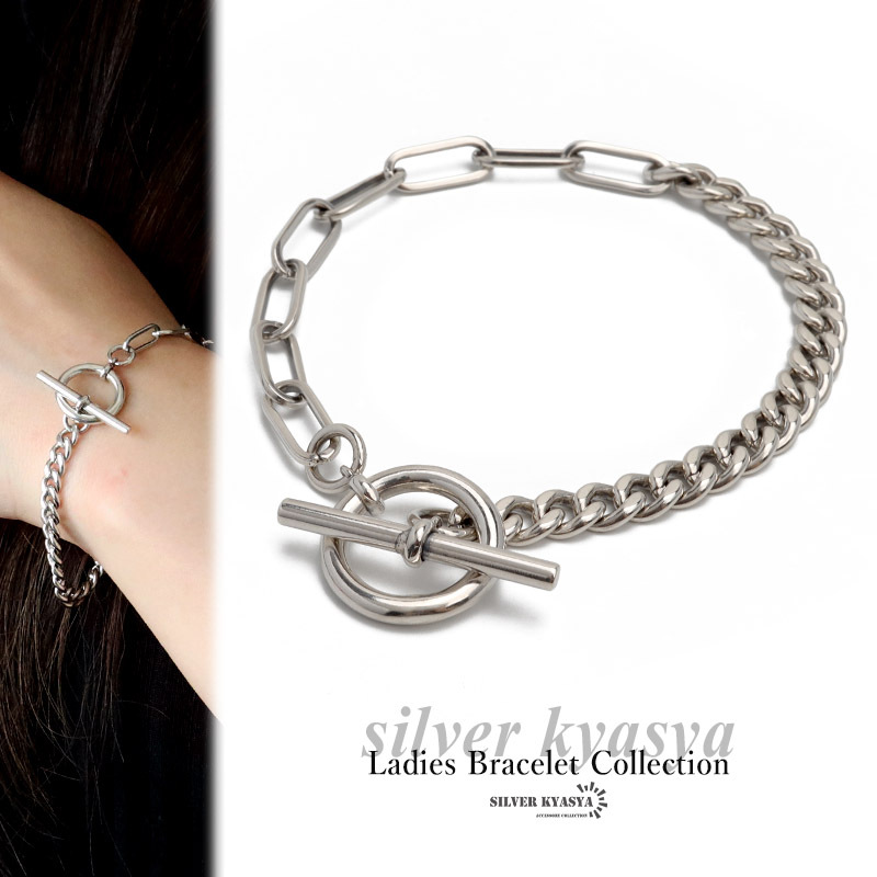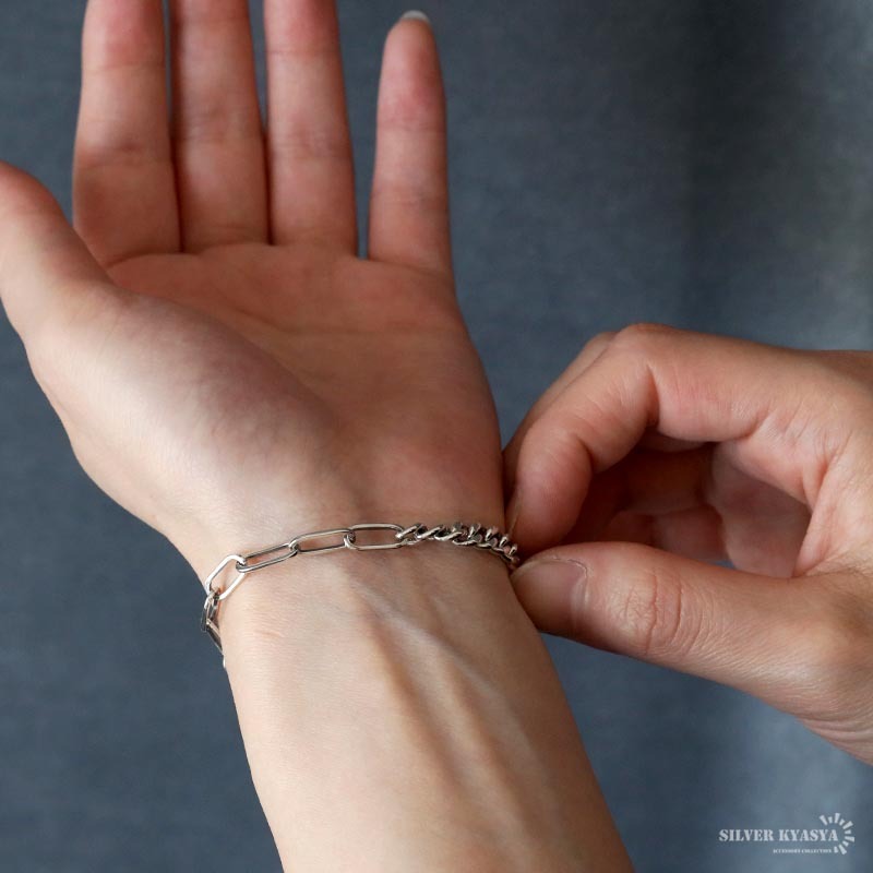 シルバー925 ブレスレット レディースブレスレット 喜平 長小豆 コンビチェーン チェーンブレスレット マンテル 金属アレルギー