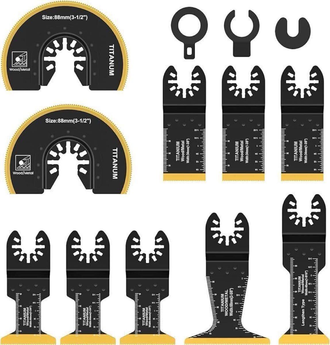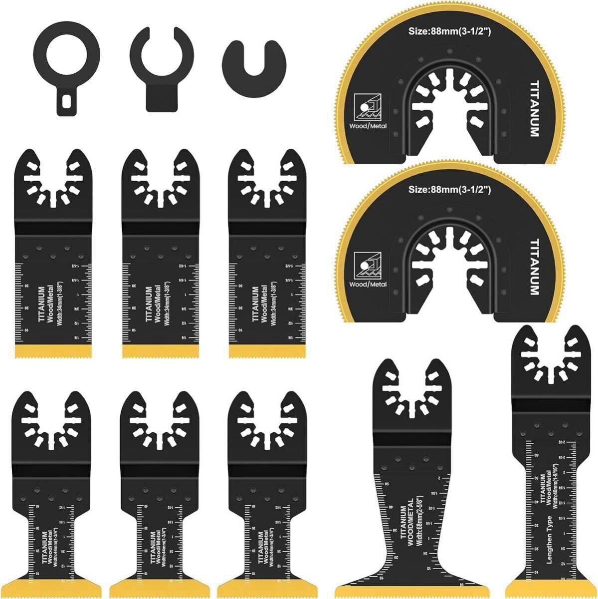 マルチツール 替刃 刃先チタンメッキ 10点セット チタンメッキ 替え刃 金属木材兼用 超硬 カットソーブレード マルチ交換用ブレード 高速切断 プロ仕様 電動工具 先端工具 マキタ 日立 ボッシュ BOSCH デウォルト ミルウォーキー適用 スペーサーアダプター3個付き