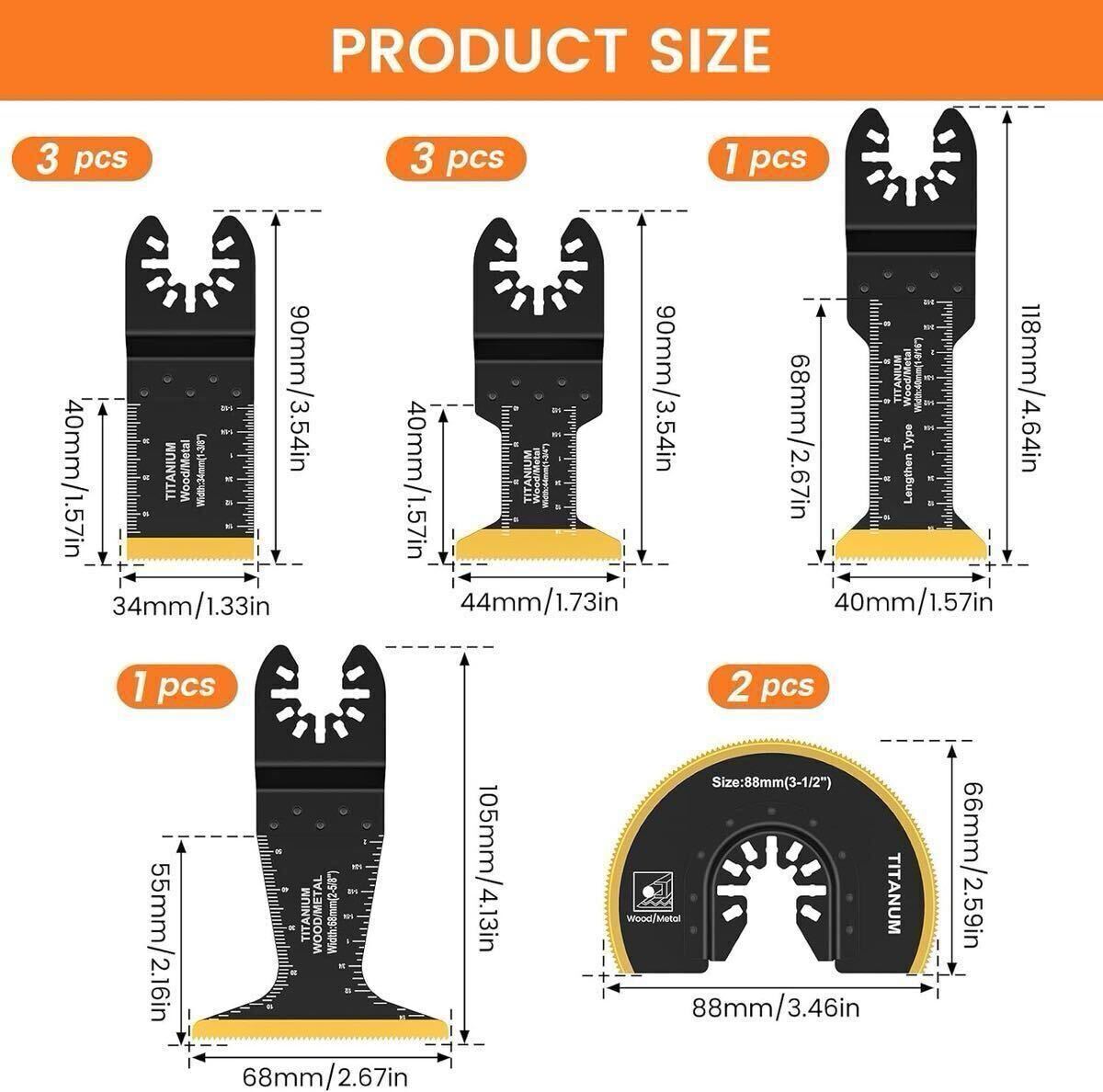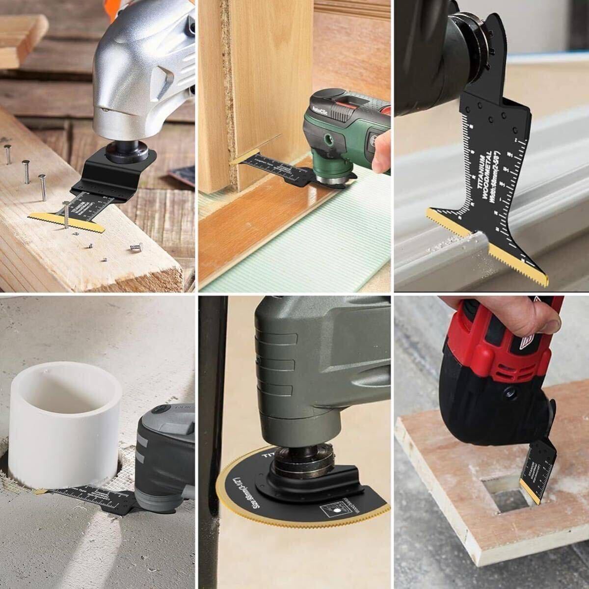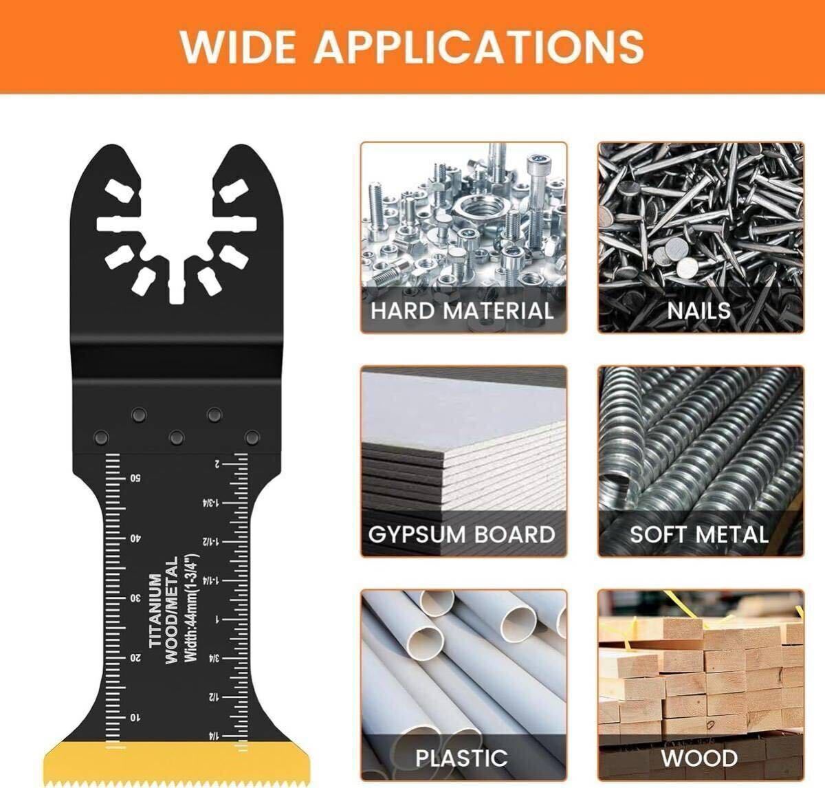 【幅広い用途】: チタンコーティングされた鋸刃は、建物の枝、家の装飾、ドアフレームの床の切断、金属の切断、プラスチックの切断に使用でき、さまざまな切断ニーズに対応します。ご注意:このマルチツールブレードは、金属(アルミニウム、釘、軟鋼)、木材、プラスチックの切断に使用できます。 硬鋼(スチール釘、スチールボルト)の切断にはお勧めできません。