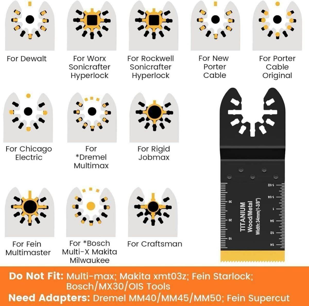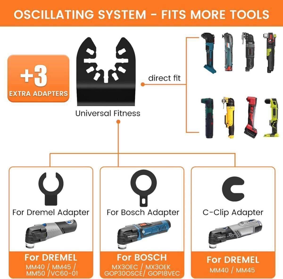 【より高い互換性】: ユニバーサルインターフェイスは、市場に出ている電動振動ツールの 95% 以上と互換性があるように設計されています。 ミルウォーキー、マキタ、デウォルト、日立、ボッシュ、BOSCH、デウォルトなど。 注: このセットは、スターロックおよびスターロック プラス インターフェイス システム、MM30、MM40、MM50▲を備えたツールには推奨されません。