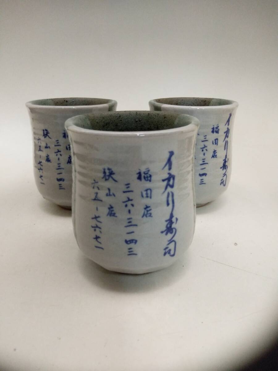 0127-0005  中古★昭和蔵出し 湯呑み 3個 お寿司屋さんネーム入り