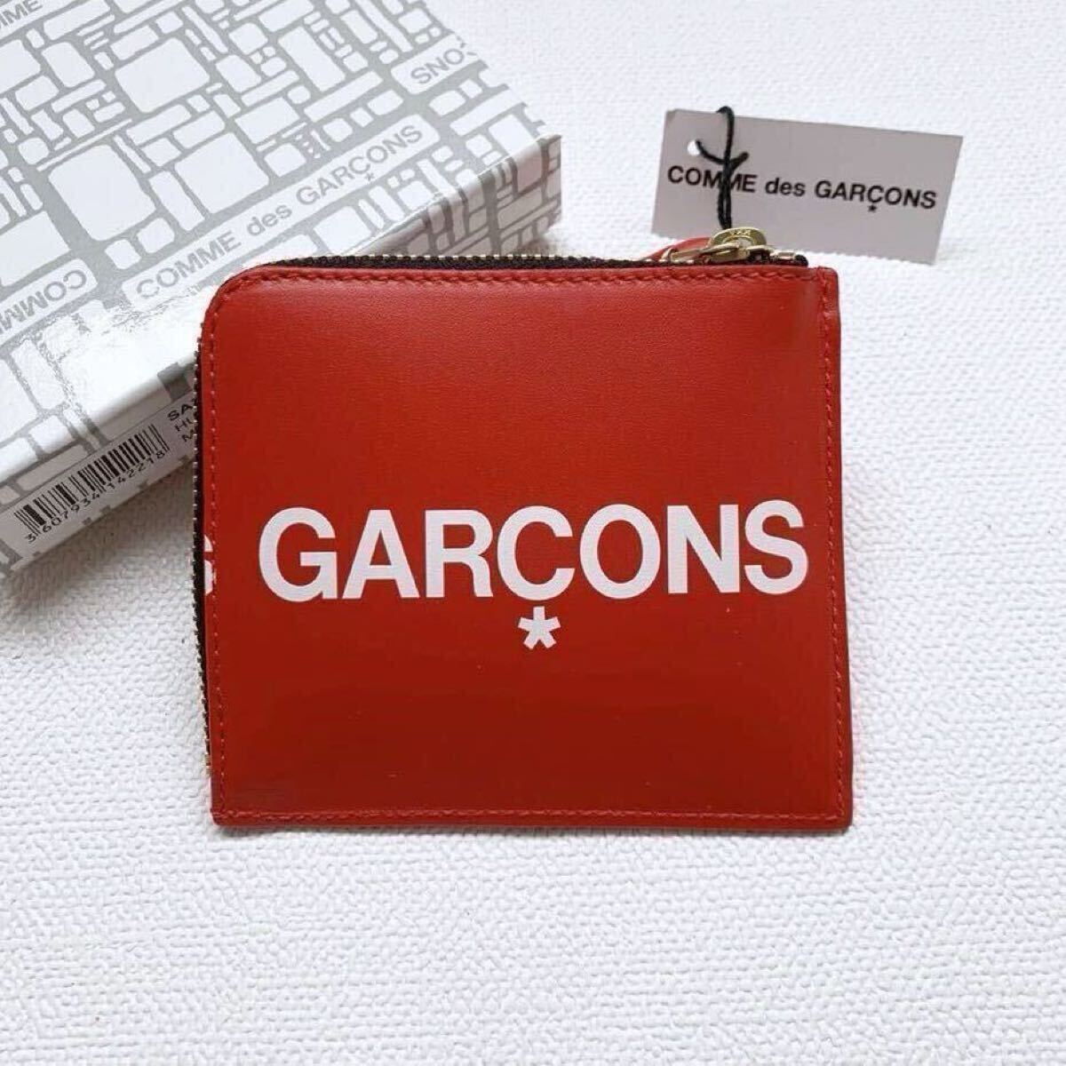 Wallet COMME des GARCONSからHuge LogoコレクションのL字型ZIP財布 SA3100HLです。ブランドロゴを大胆に配したインパクトのあるアイテムです。CdG S.A.S(コム デ ギャルソン フランス社)が生産を担当し、スペインで生産され、日本国内に輸入しているウォレットライン。ポケットにすっぽり収まる使い勝手の良いコンパクトサイズ、スタンダードなクラシックレザーを全体に使用し、ゴールドのファスナーがアクセントです。大量にカードや券を入れるのには向きませんが、札、カードなども収納でき、中央に小銭入れがあります。