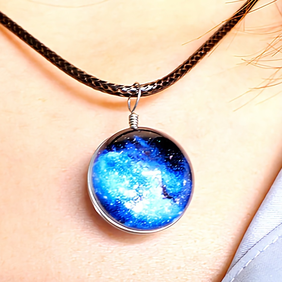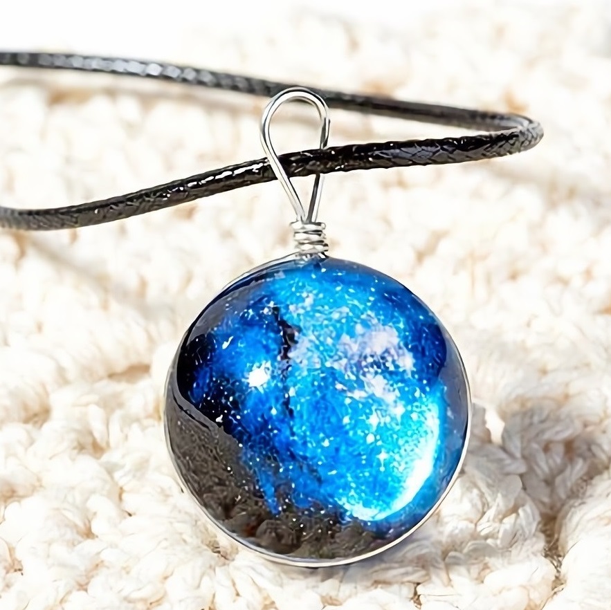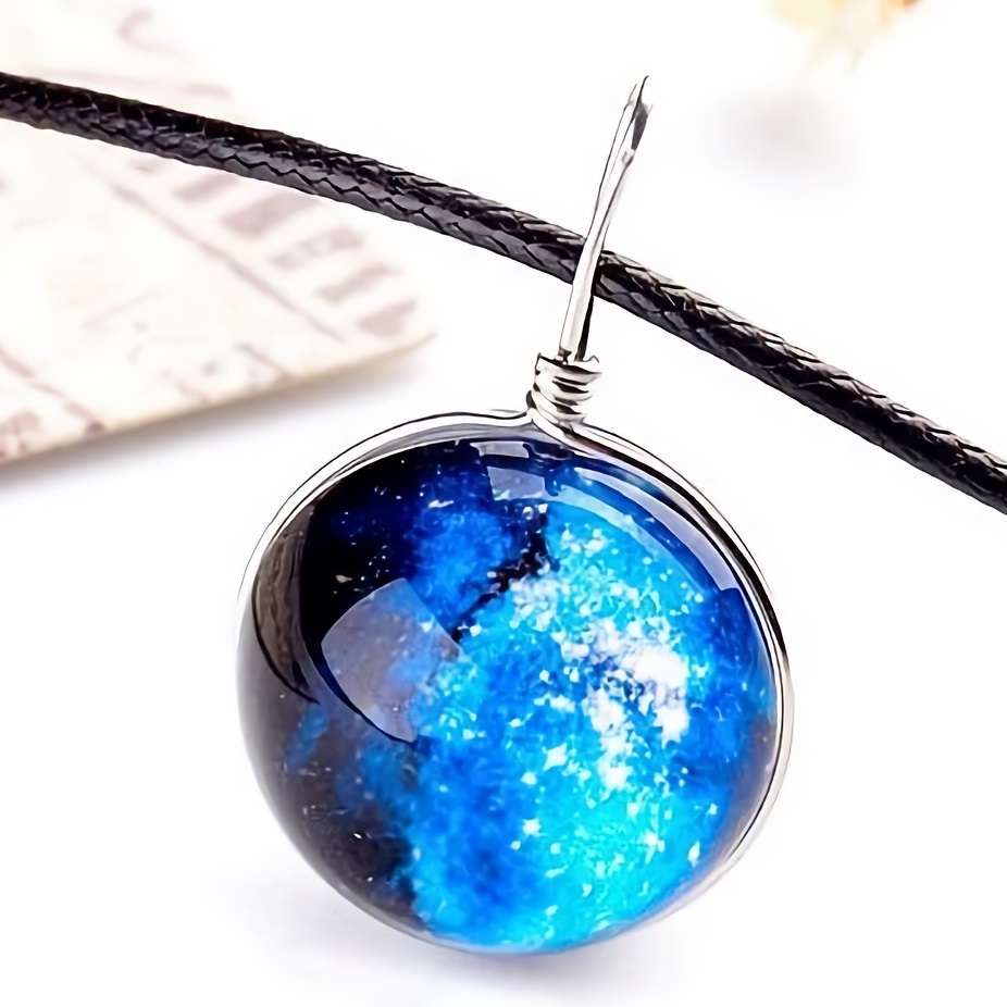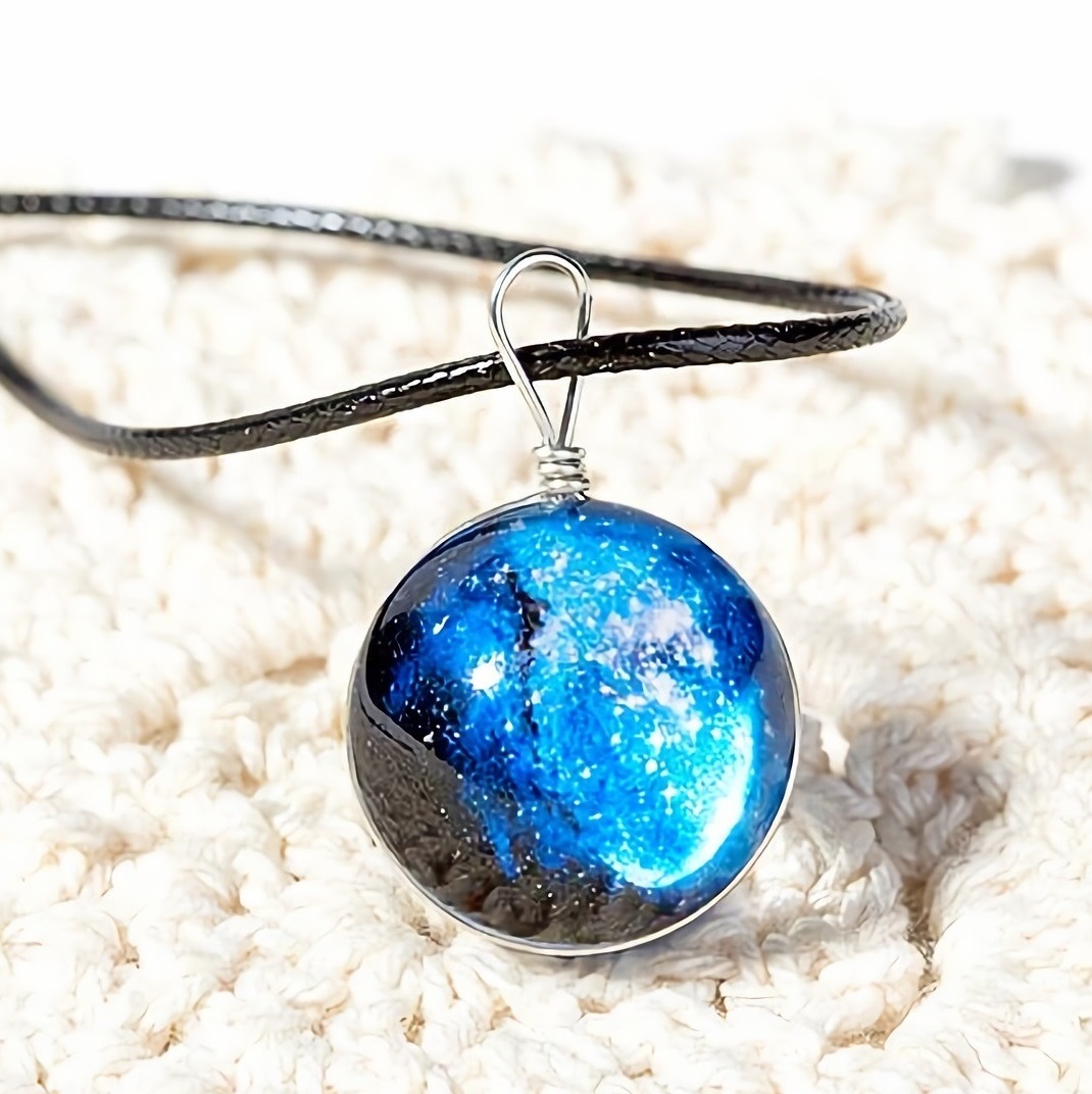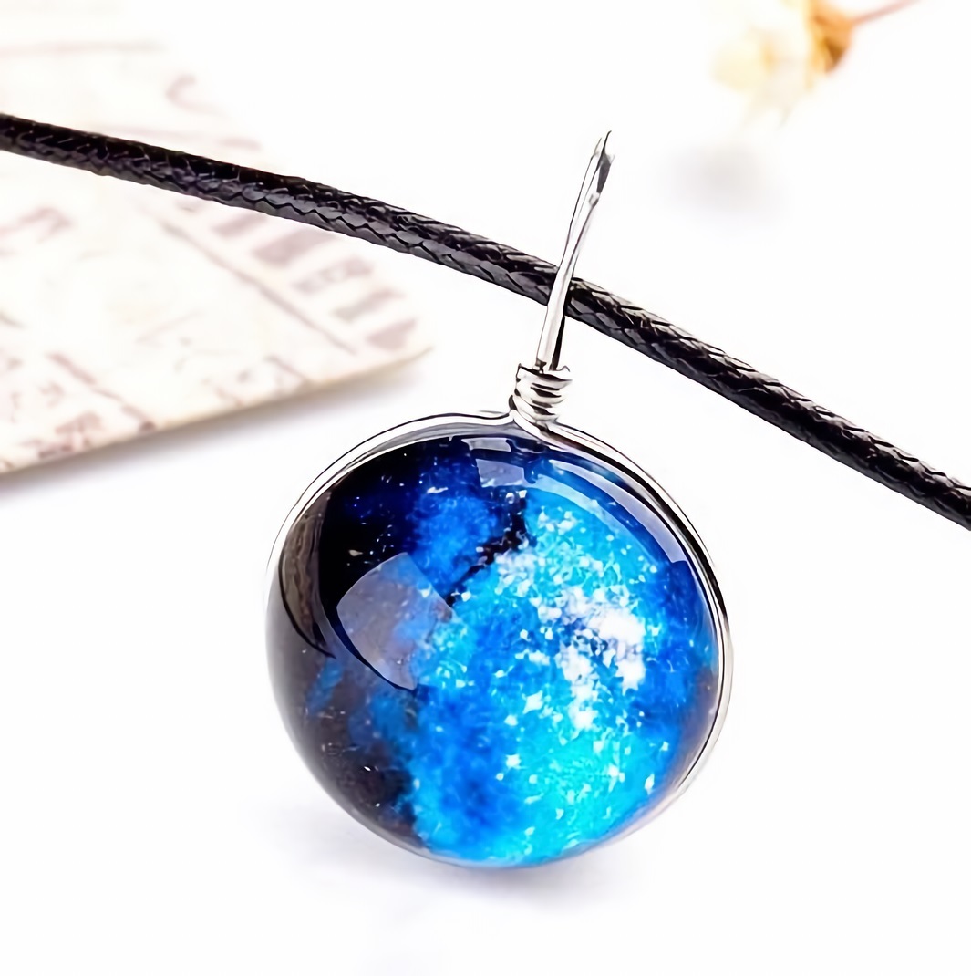 新品★送料無料★宇宙の天球 清涼な青 銀河ギャラクシースフィア シルバーネックレス誕生日プレゼント旅行連休初春花見ギフト国内発送