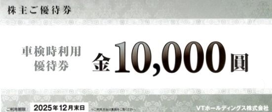 VTホールディングス 株主優待 車検時利用優待券 10,000円 2025.12月末日迄