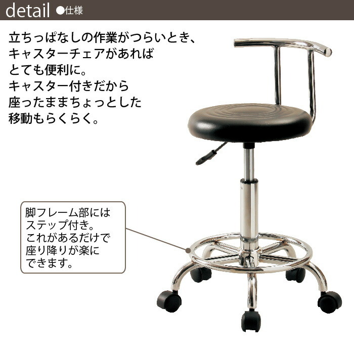 | ヘタりにくいモールドウレタンのクッションを使用したキャスターチェアです。 |