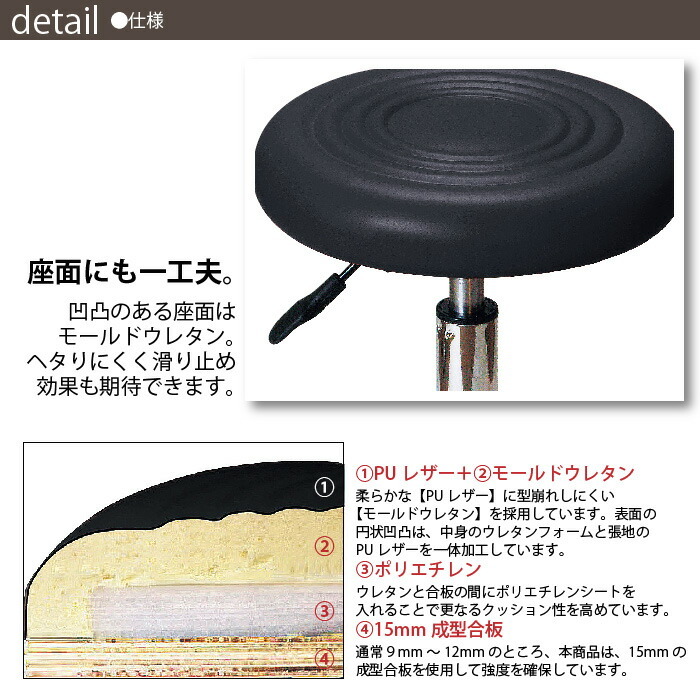 | [張地]合成皮革(ポリウレタンレザー) [脚]スチール クロームメッキ [背]スチール クロームメッキ |